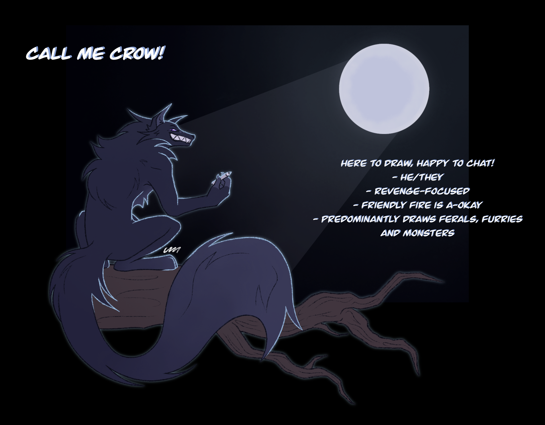 I'll be participating in Artfight again this year on Team Werewolf. I'll be focusing on revenge attacks since last year's 100 character piece had me burnt out for months. [Here's my page if you're interested](https://artfight.net/~CrowMeander). ^w^I'll be participating in Artfight again this year on Team Werewolf. I'll be focusing on revenge attacks since last year's 100 character piece had me burnt out for months. [Here's my page if you're interested](https://artfight.net/~CrowMeander). ^w^0 Comments 0 Shares 25 Views