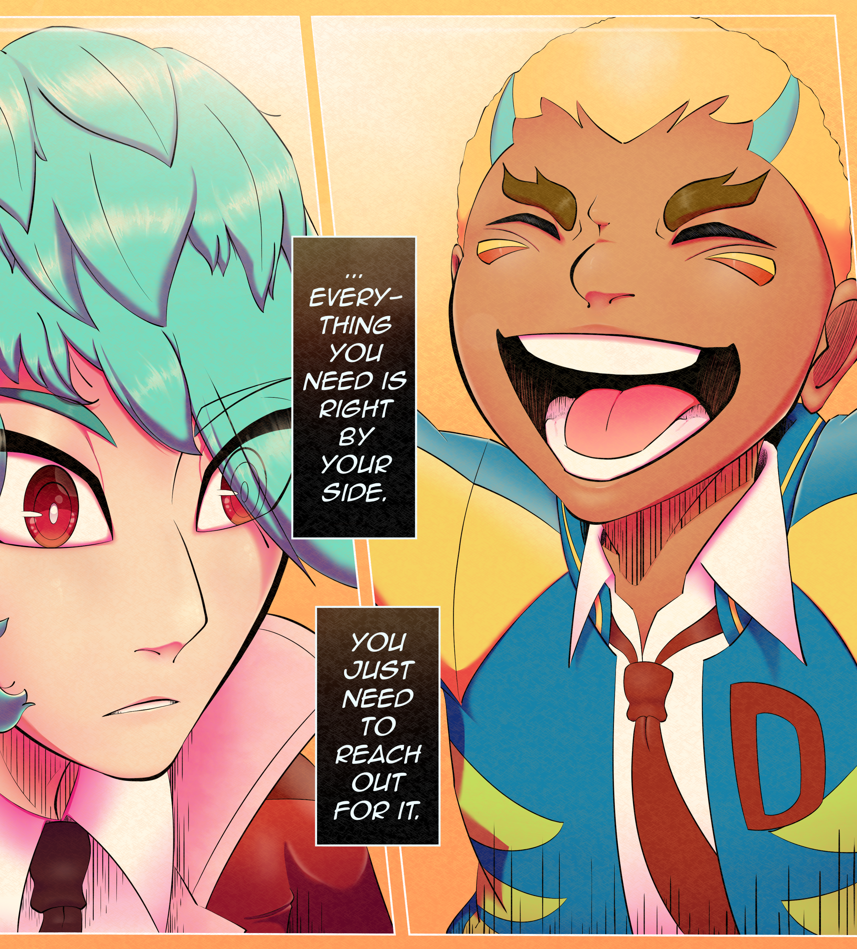 ANYWAY I hope you all enjoy!! I'm thinking of redrawing the kenhina moment in the manga where they knife fight but as free and lui next, we shall see >:3cfuck you *beybursts your haikyuu* I did a mashup panel redraw of one of my fav kagehina moments from haikyuu but as delta and drum from beyblade burst gt instead hehe. I'm SUPER proud of how it came out, I tried very hard to not be bad at coloring♡ very quick qna q: "is this ship art?" a: if you want it to be lol q: "why is drum tan?" a: cause that's how I draw him♡ ANYWAY I hope you all enjoy!! I'm thinking of redrawing the kenhina moment in the manga where they knife fight but as free and lui next, we shall see >:3c0 Comments 0 Shares 3 Views -