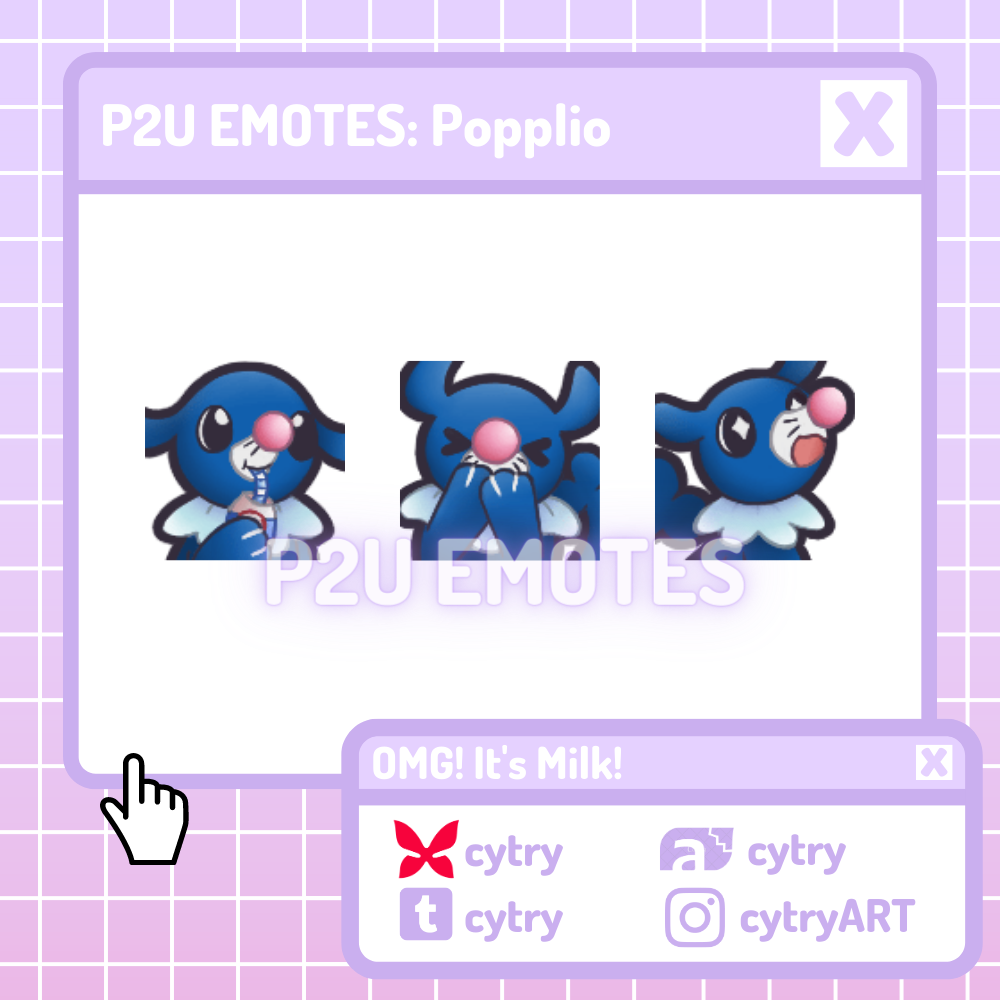 Thank you so much! ;0;3 Hello, hello!! Made some Popplio emotes! If you'd like these, you can purchase them here: [Etsy](https://www.etsy.com/shop/cytrySHOP) || [Gumroad](https://cytryshop.gumroad.com/) || [Ko-Fi](https://ko-fi.com/cytryshop) Thank you so much! ;00 Comments 0 Shares 13 Views