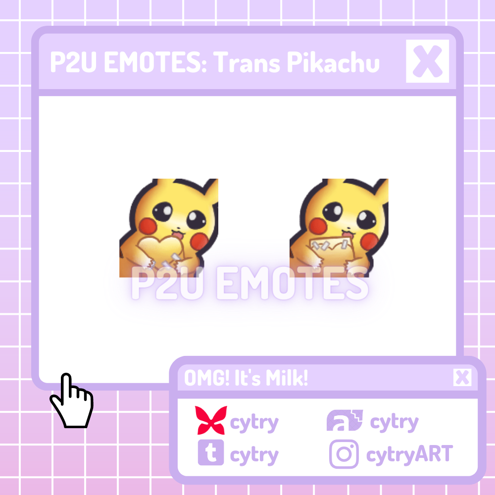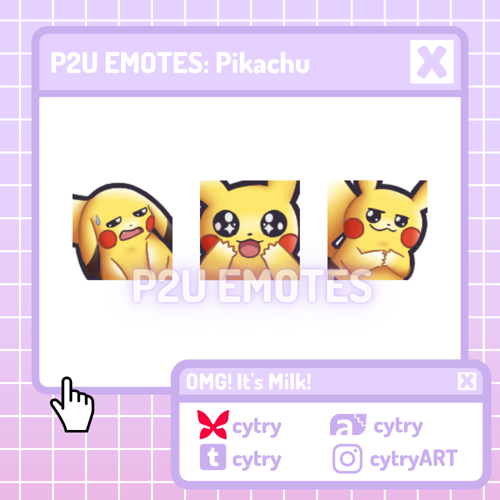 Thank you so much! ;0;3 Hello, hello!! Made some Pikachu emotes! This is my first set, and if you'd like these, you can purchase them here: [Etsy](https://www.etsy.com/shop/cytrySHOP) || [Gumroad](https://cytryshop.gumroad.com/) || [Ko-Fi](https://ko-fi.com/cytryshop) Thank you so much! ;00 Comments 0 Shares 9 ViewsPlease log in to like, share and comment! -