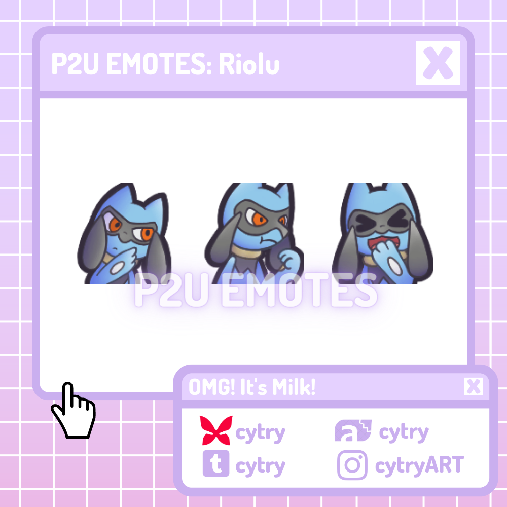 Thank you so much! ;0;3 Hello, hello!! Made some Riolu emotes! If you'd like these, you can purchase them here: [Etsy](https://www.etsy.com/shop/cytrySHOP) || [Gumroad](https://cytryshop.gumroad.com/) || [Ko-Fi](https://ko-fi.com/cytryshop) Thank you so much! ;00 Comments 0 Shares 10 Views -