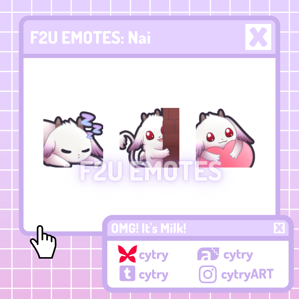 Thank you so much! ;0;3 Hello, hello!! If you've seen the anime Karneval (or read the manga), you might know what a niji is! They're a rare and very endangered creature, which lives in a place called the Rainbow Forest. The main protagonist of Karneval, Nai, just so happens to be half niji! Anyways, I originally made these as a gift for my good friend [cainsmarking](https://www.furaffinity.net/user/cainsmarking/)! He's the biggest Karneval fan I know, and the series means a lot to him. However, he really wanted me to share this gift with everyone, especially fans of Karneval! So, you can thank him for these! <3 These emotes are 100% free (though if you wish to donate, you are more than welcome to do so!) Please enjoy them! <3 You can get them for free here: [Gumroad](https://cytryshop.gumroad.com/) || [Ko-Fi](https://ko-fi.com/cytryshop) Thank you so much! ;00 Comments 0 Shares 12 Views -