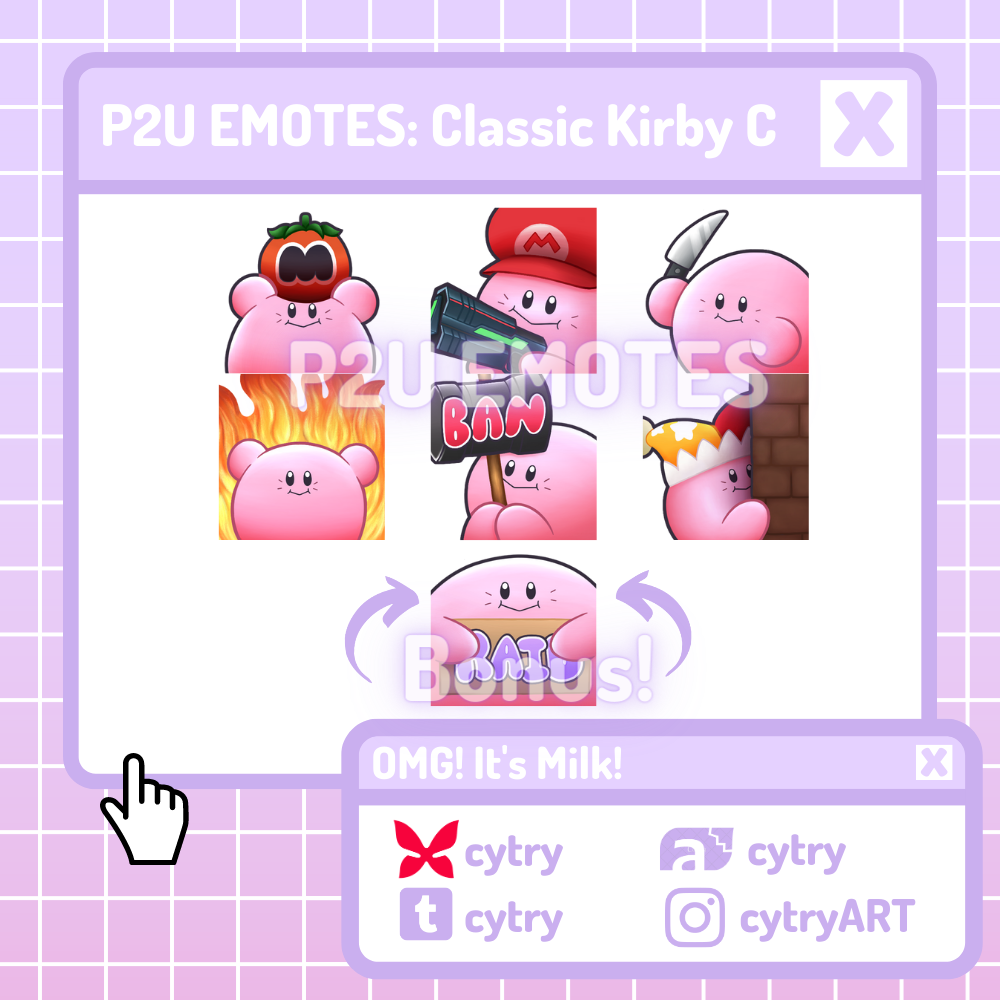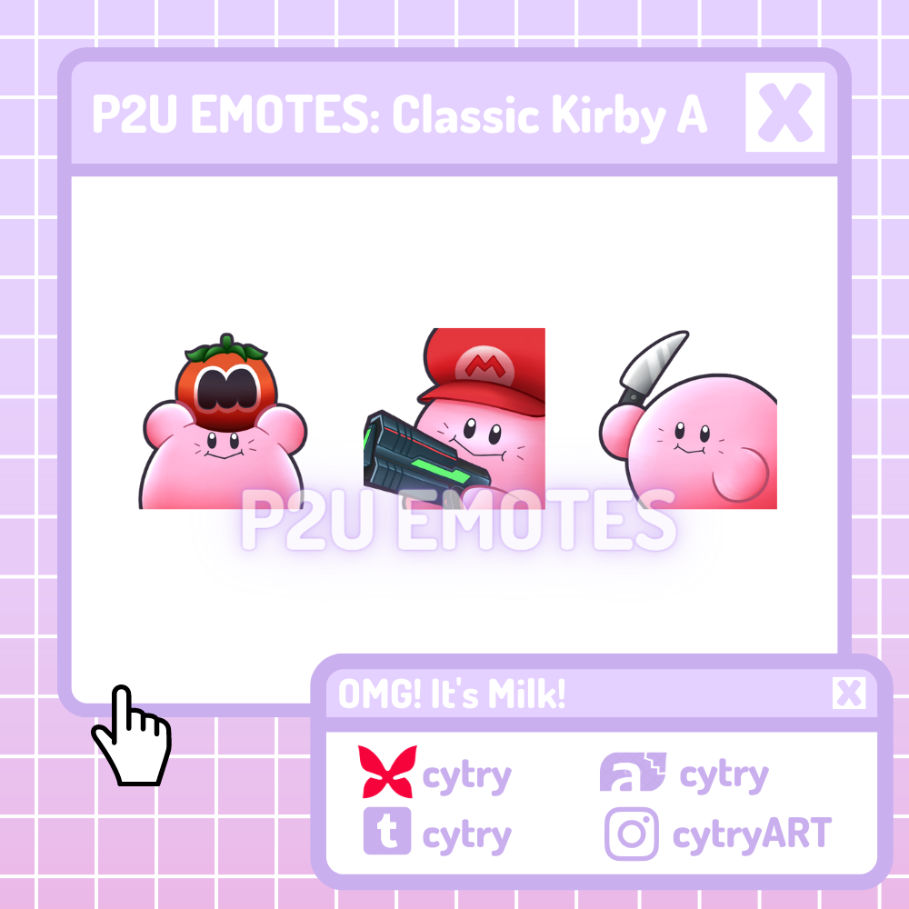[Etsy](https://www.etsy.com/shop/cytrySHOP) || [Gumroad](https://cytryshop.gumroad.com/) || [Ko-Fi](https://ko-fi.com/cytryshop)MOOORE!! I just really like the way classic kirby looks. The :) face is very intimidating, and it inspired me. Hope you like them! If you wanna see the other sets, check them out here! [Set B](https://inkblotapp.page.link/QwupgFcR8FwVykMw6) [Set C](https://inkblotapp.page.link/GT8KZPxU9ik4t7ys8) [Etsy](https://www.etsy.com/shop/cytrySHOP) || [Gumroad](https://cytryshop.gumroad.com/) || [Ko-Fi](https://ko-fi.com/cytryshop)0 Comments 0 Shares 13 Views -