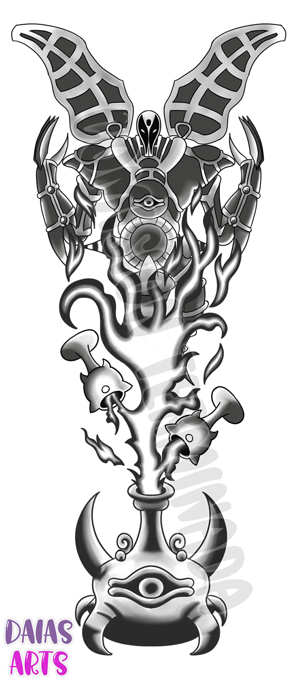 Tatoo design commission I did for a friend in another social media who asked me to draw relinquished and it's ritual spell card