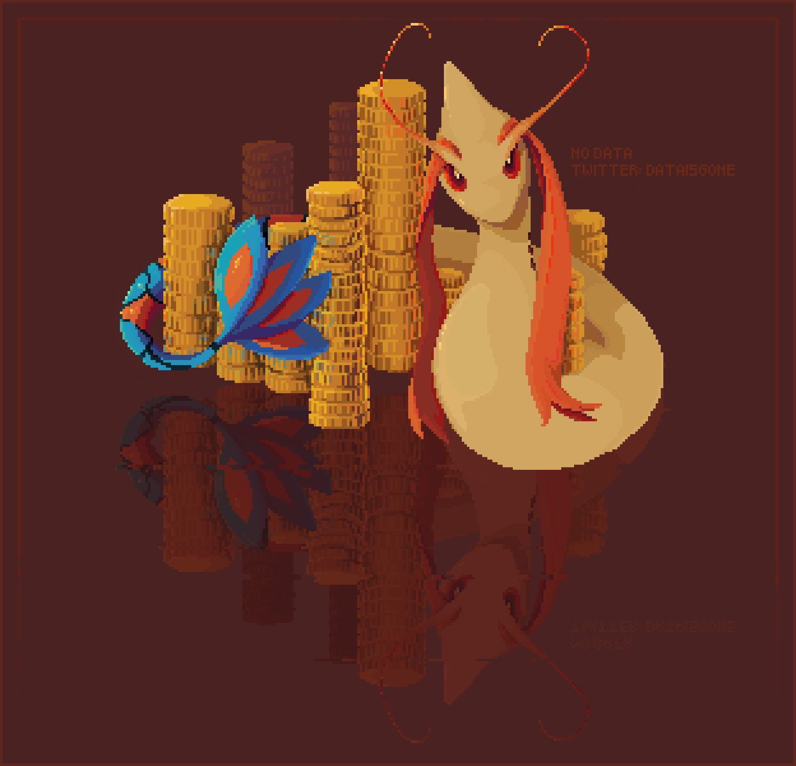 _A Milotic and its shiny coins._**Pixel Dailies #20 | 12/23/21 | Theme: Shiny** _A Milotic and its shiny coins._0 Comments 0 Shares 9 Views -