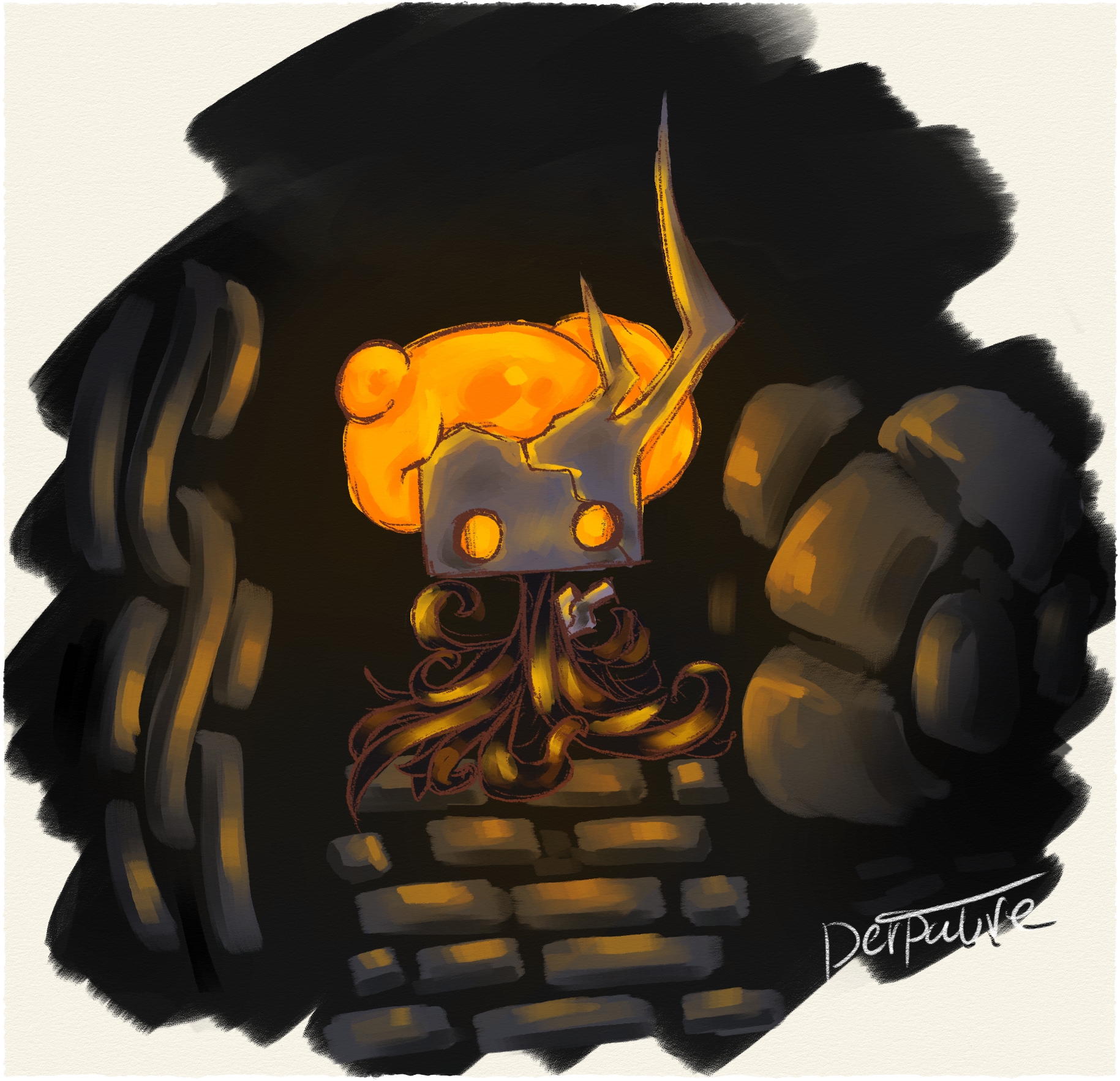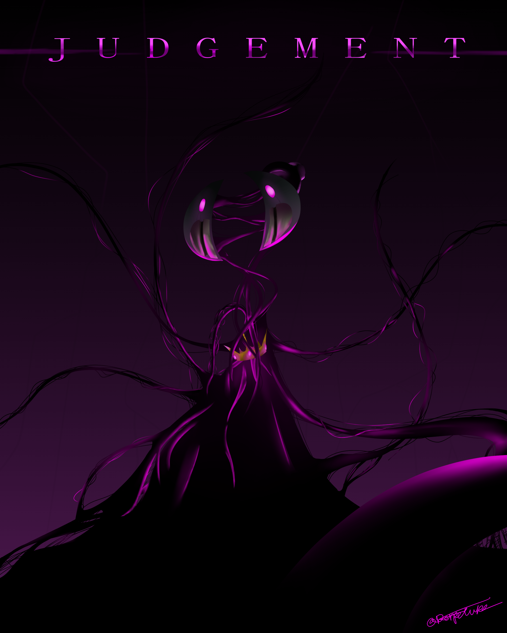 Some fanart I did of my friends little webcomic thing, a spooky guy huh? The "JUDGEMENT" at the top was actually my older brothers idea and yes it's an Ultrakrill reference lol