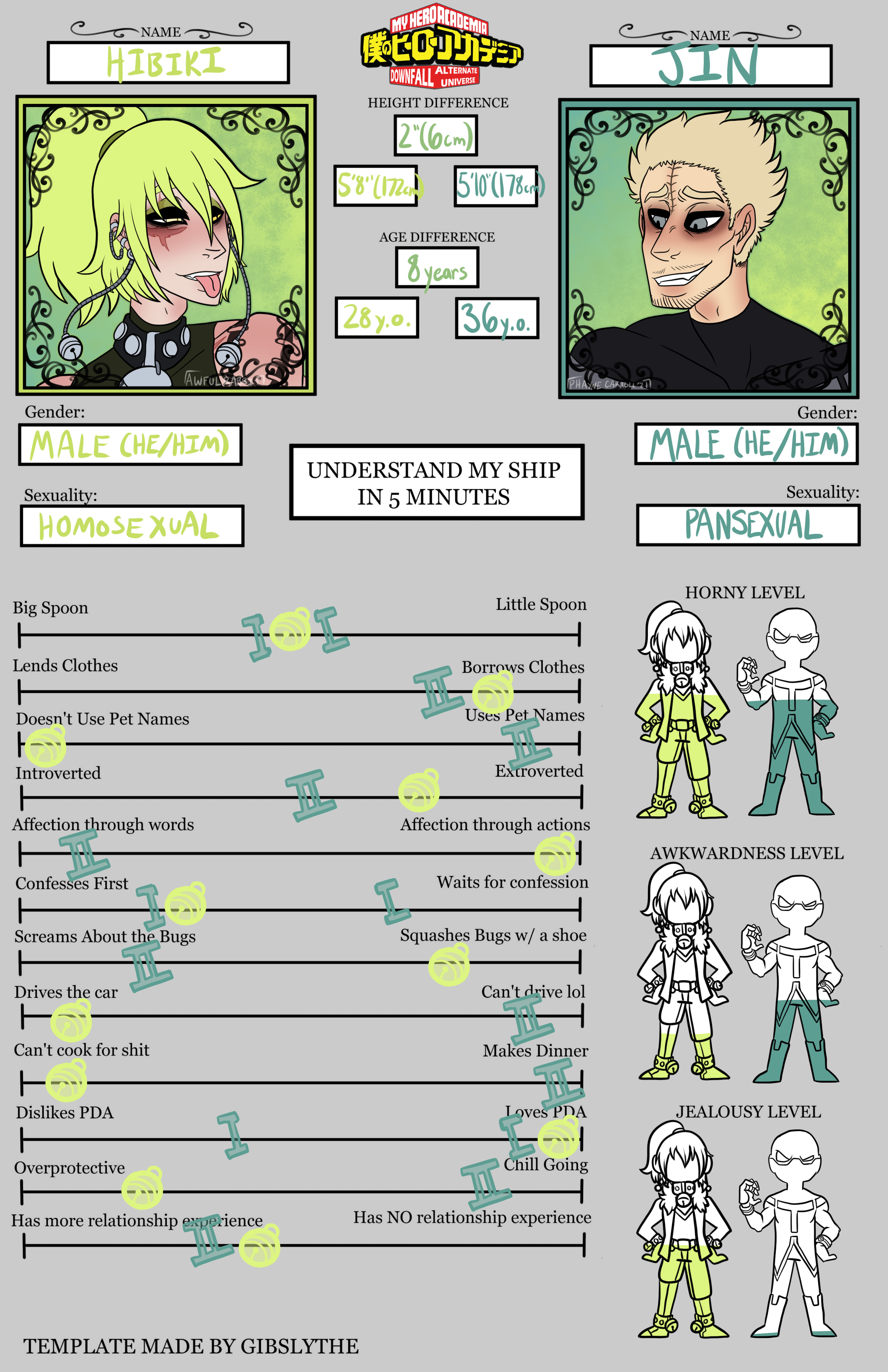 • Alright! Another of these fun couple memes. This time we've got Hibiki and Jin!