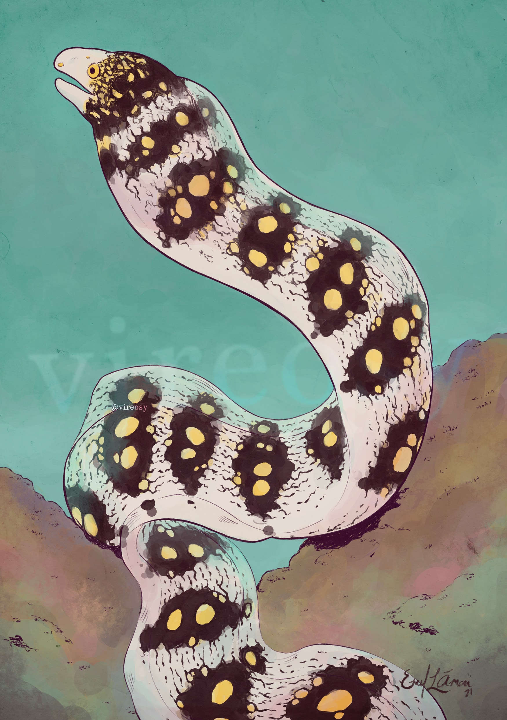 Snowflake moray drawn for Sea Unseen, a marine art anthology benefitting the Australian Marine Conservation Society (2021 May).