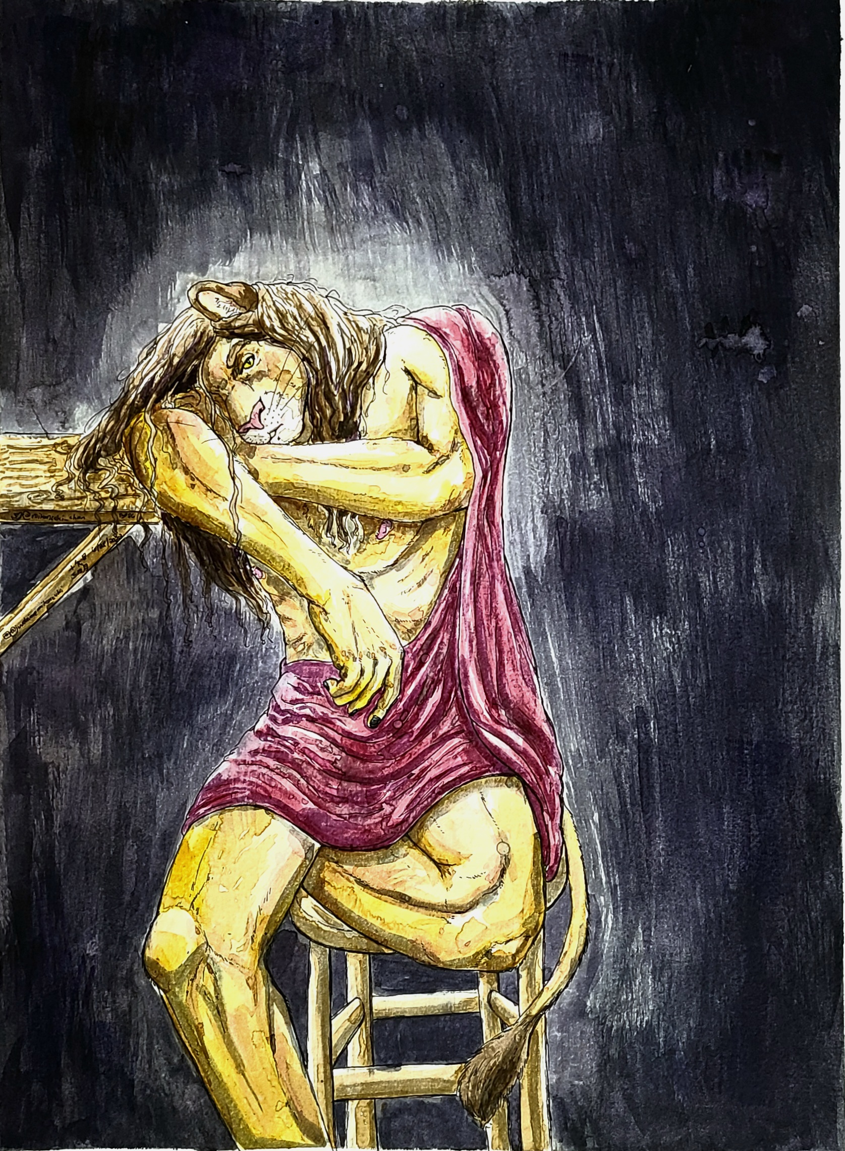 Watercolor and Ink painting from my Senior Exhibition, 2022. Version 2 as commissioned by a close friend.