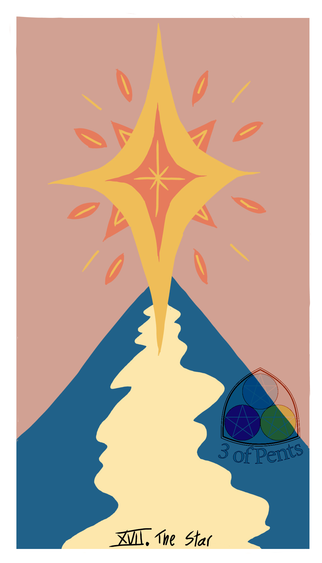 100 Palettes Challenge // Palette #1 // The Star The very first entry into my 100 Palettes Challenge, using the palettes in "100 Years of Color" by Katie Greenwood. This palette is from a poster, published in 1900, for an exhibition in Paris. I chose to design a Star tarot card, mostly based entirely on the blue and yellow colors since the main symbolic images in The Star are the star (obviously) and water. In general I like how it came out! I think if I were designing it independent of this challenge I would've used a cooler color for the sky; I might have even used the blue for the sky and used a darker blue or purple for the water. Looking at it now, I wonder how it would've looked different if I swapped the two pinks. But I also like how making the sky that pale pink and using the darker pink in the star gives it more dominance in the image. I also considered adding some more lines for ripples in the water (the cream on the blue, and the blue on the cream). But I wasn't confident in my ability to make it look right, and I'm liking this color-block-y style lately.