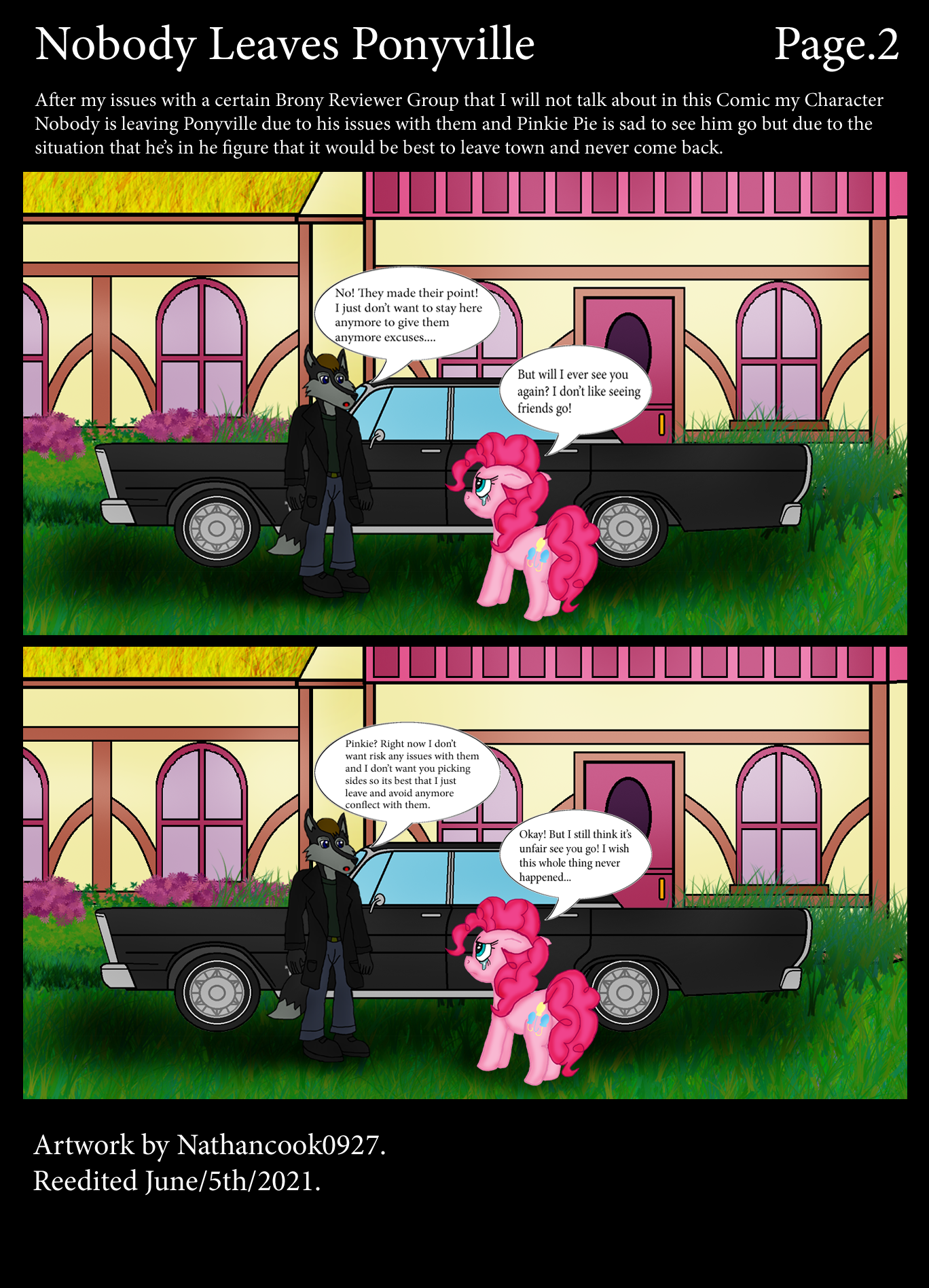 So Pinkie Pie tries to talk to Nobody out of leaving but he has pointed out that those Certain Pony Reviewers wanted him gone and he doesn't want Pinkie picking sides knowing it would make the issue worse.