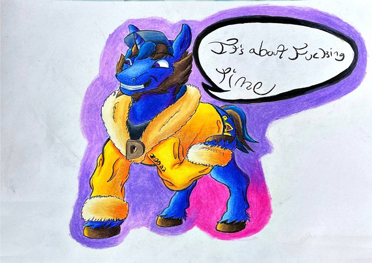 _Half body of a blue anthropomorphic demon lion from behind, flexing is the first pair of arms and torn apart a 2021 flag. He has neon purple scars. A bite scare on the left ass cheek, claw scares on the right upper leg, claw scares on every armes and a little bite scare on the left ears, a bit part has been bitten off. He has deep blue fur and a light blue mane following his spine and tail. He is in an office, in front of a desk with a computer screen and a design lamp, at night. The building behind the big window and starry night with a full moon_This is Blue Sun, The Demon King of the North of Hell. At first, this was an OC I drew for Hazbin Hotel but afterward, I decided to use it for me and RP with my fiancee. ------ **ALT-TEXT** _Half body of a blue anthropomorphic demon lion from behind, flexing is the first pair of arms and torn apart a 2021 flag. He has neon purple scars. A bite scare on the left ass cheek, claw scares on the right upper leg, claw scares on every armes and a little bite scare on the left ears, a bit part has been bitten off. He has deep blue fur and a light blue mane following his spine and tail. He is in an office, in front of a desk with a computer screen and a design lamp, at night. The building behind the big window and starry night with a full moon_0 Comments 0 Shares 0 Views -