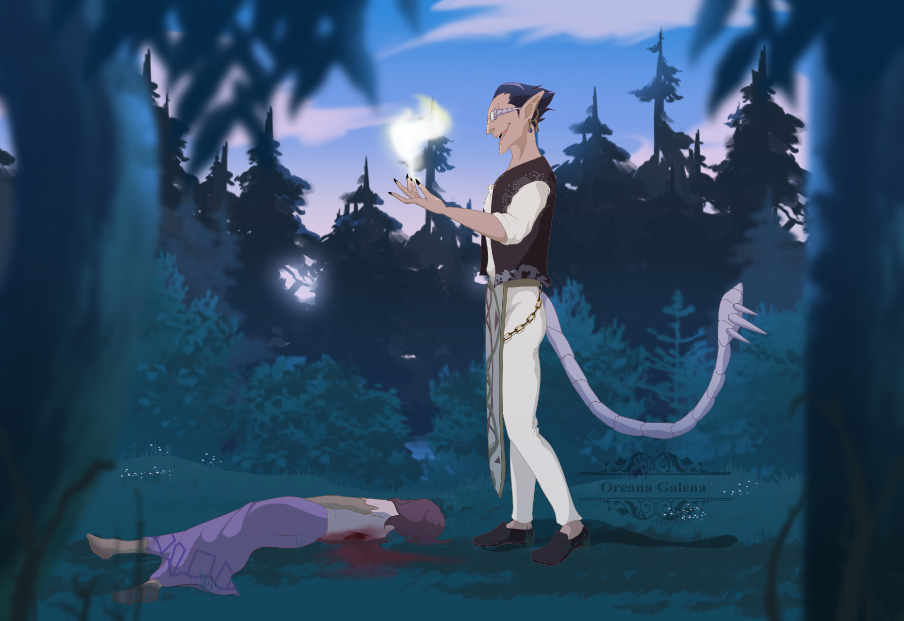 "Oh, do not fret, my dear--your time doesn't have to be over, if you do not wish for it to be..." - Demiurge This image was stuck in my head for a bit, so I decided to work on it. ♥ The main way Demiurge increases his numbers in my story Demon King of the Desert is by convincing people to join his race of demons when he encounters their souls. If you're a fan of past LOZ games, you might recognize the dress.. lol It's another wink and nod to the franchise that inspired parts of Demon King to begin with. ♥