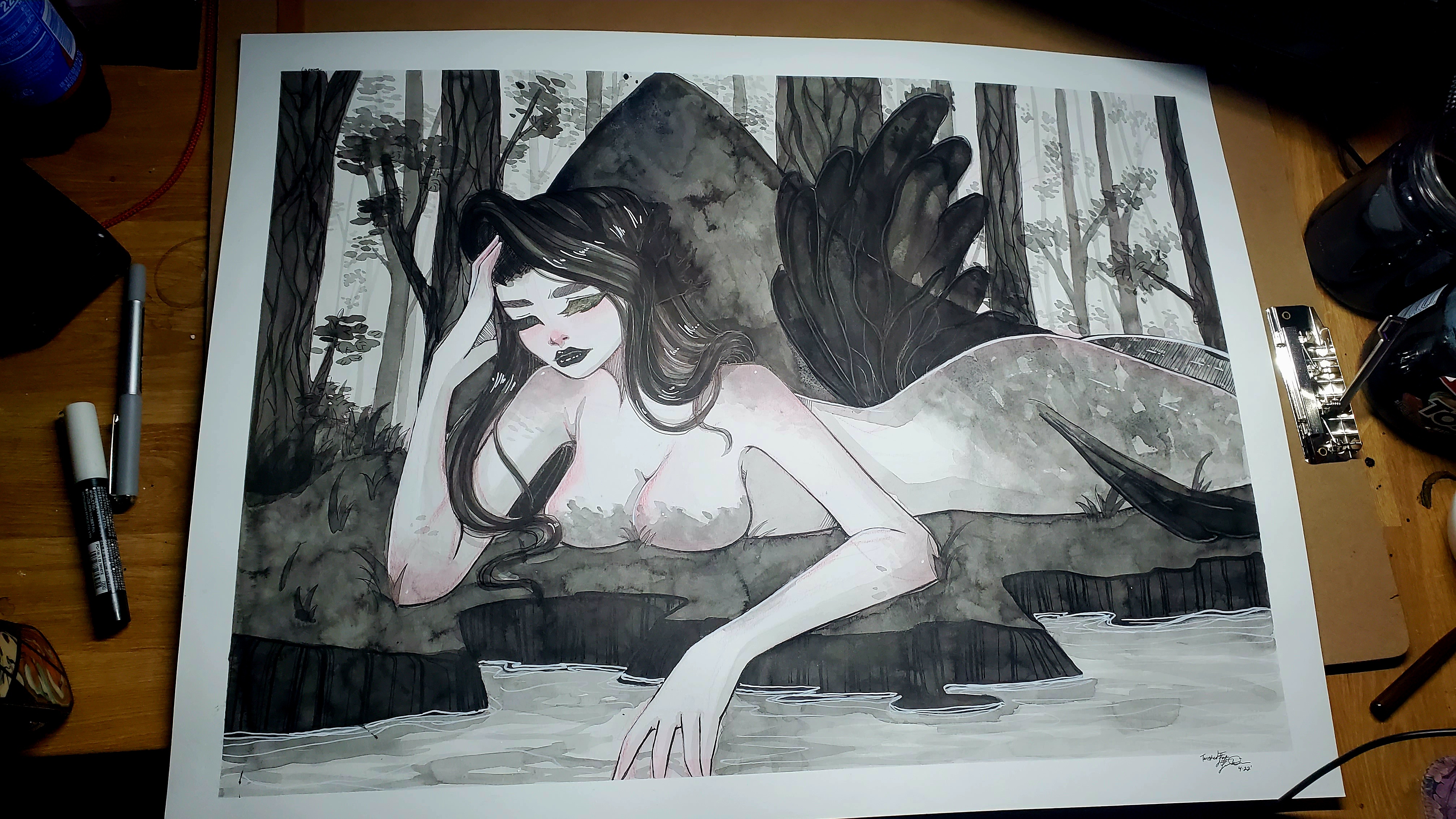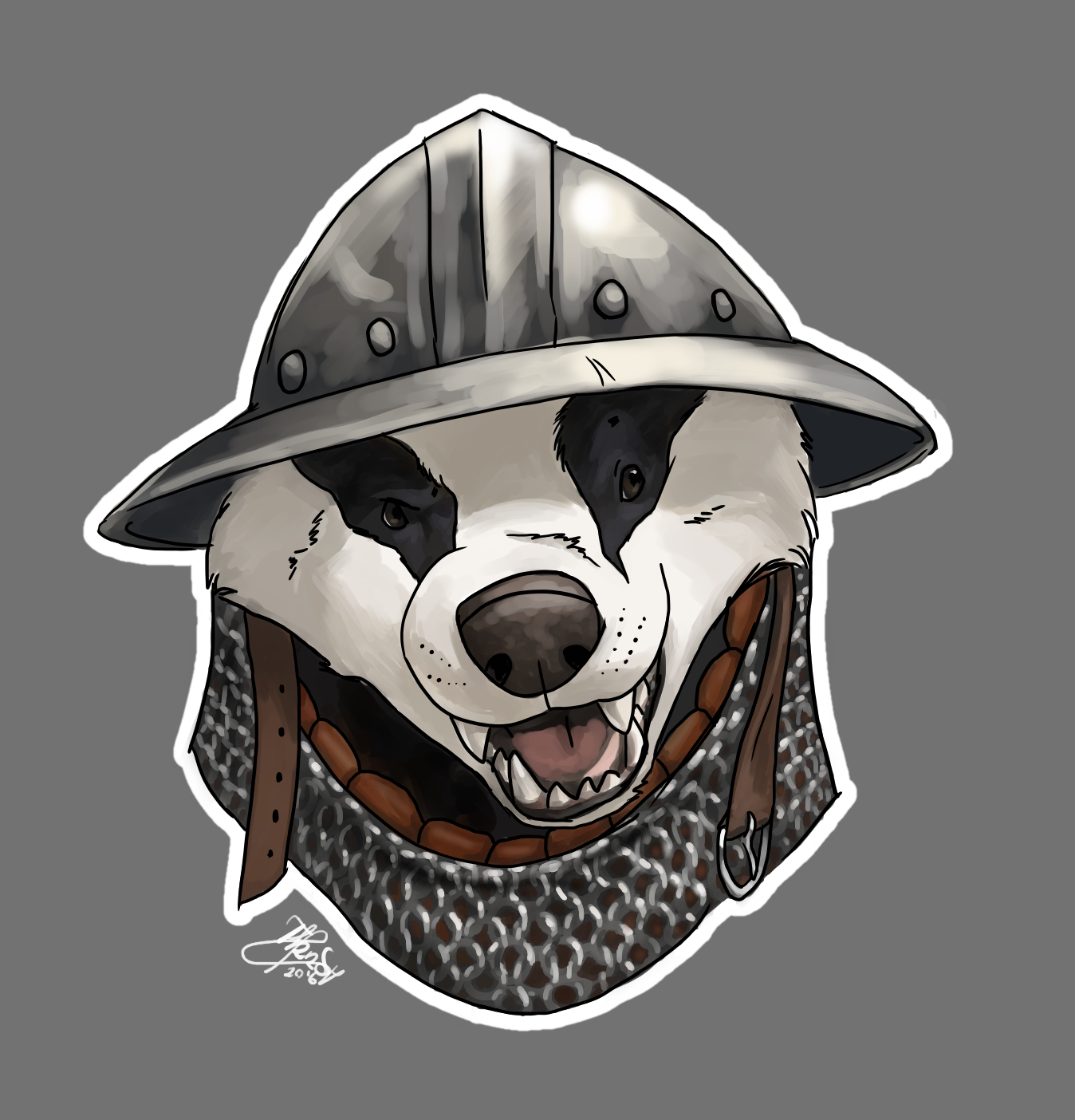 A portrait of a badger in a kettle hat I've made for my brother back in 2016.
