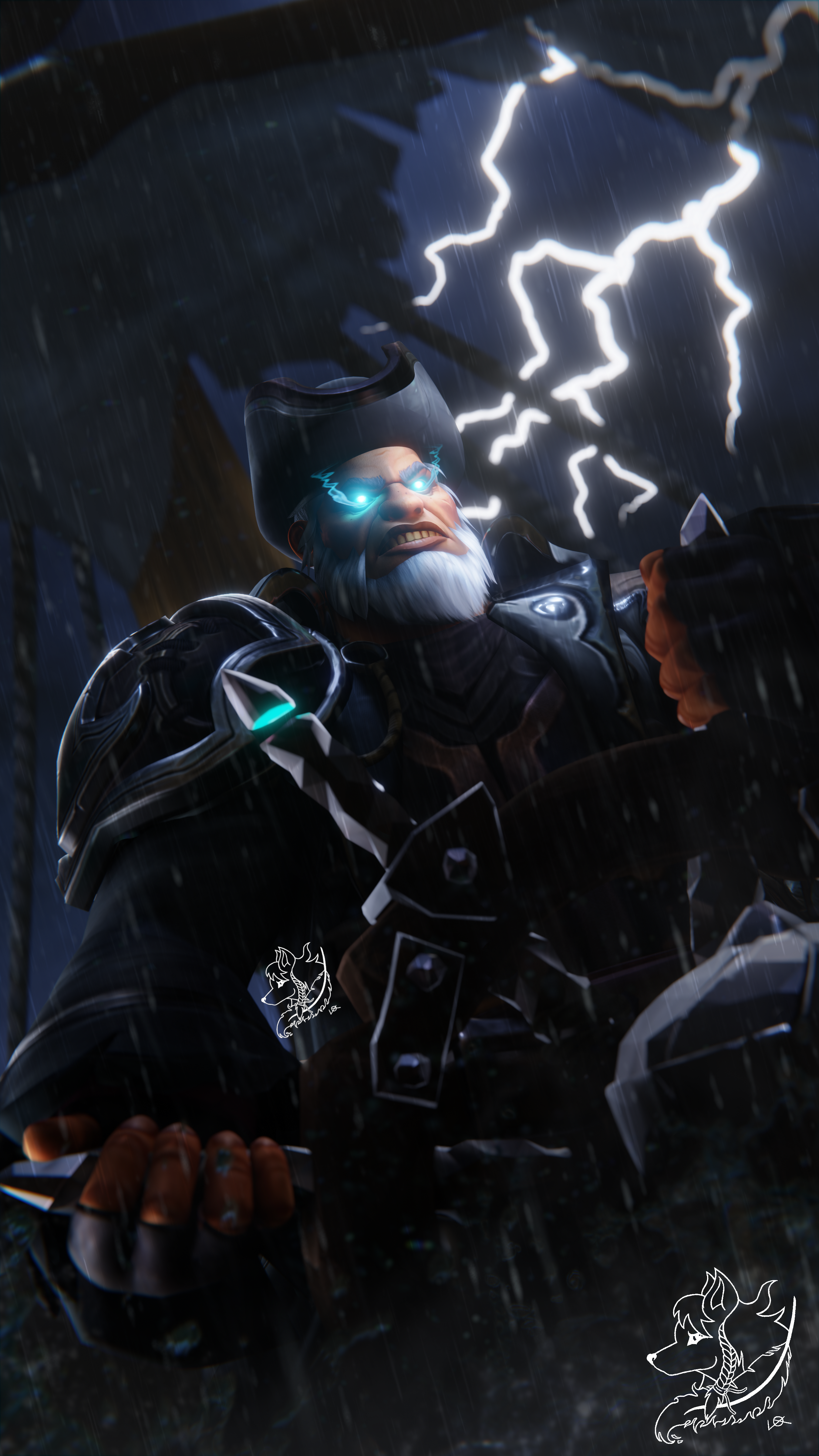 Back at the beginning of August, I donated a commission slot for the Moonguard-US Tournament of Ages event. Here we have the second and final piece crafted for the winner. It features their Kul Tiran Death Knight, Damalten. In life Damalten was a mercenary, he was hired to retrieve an artifact. In the end, he was ultimately betrayed. Damalten and his crew were murdered. Eventually, Damalten was raised into undeath as a Death Knight and now roams the world seeking out those who had wronged him. While Damalten wears full plate armor, I wanted to produce a piece that shows who he was but also, who he is presently. Also an art piece that reflects his rage! That's when an old Hellraiser comic book cover came immediately to mind. One where Hunger is sailing the high seas! What better way to demonstrate rage then a fierce storm at sea?! Everything really fell into place with this art piece; I also learned how to animate rain. Wait, but this specific piece isn't moving?! Since the auction winner has been so patient with me while private life keeps throwing curves, I made them a bonus animated version of this piece. It will be uploaded here as well, if Inkblot will let me.