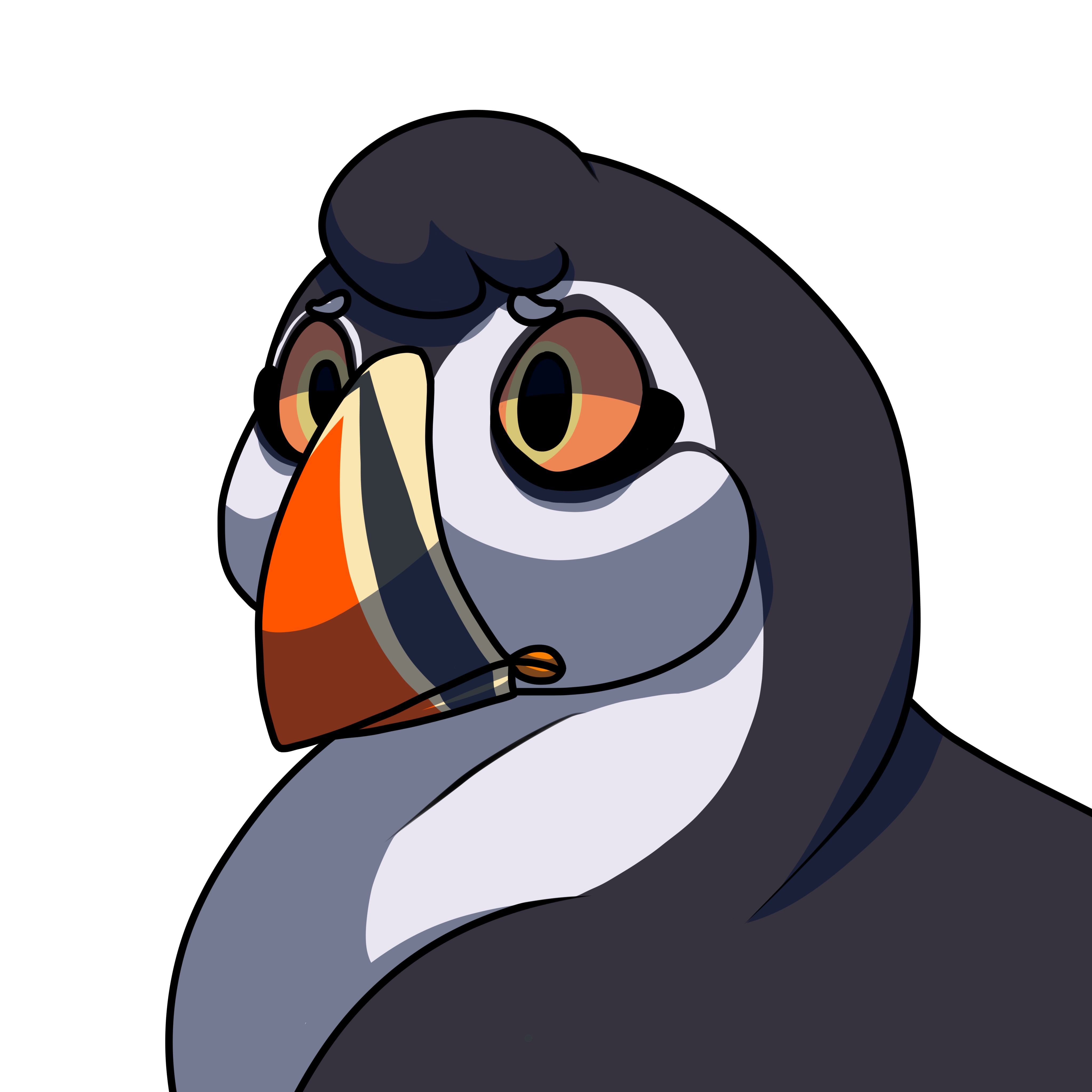 concept art of my oc Valdis (she/her)! here’s some of the lore I have for her: she was born into a group of birds who worship a queen/goddess known as Halldora. she supposedly has been living since the beginning of puffin-kind, and in order to keep her living essence, every bird part of this culture must give one egg from their first clutch to her. however, Halldora hasn’t actually been living found as long as she’s claimed to have. every time the new “Halldora” dies, the public is told she is going through a “renewing” phase in which she falls ill before reclaiming her former youth and beauty. in reality, the puffin posing as Halldora dies and is replaced by one of the hatchlings from the sacrificed clutches. Valdis was one of these hatchlings, and the previous Halldora’s successor. however, she is the first to not exactly want to go along with this plan and lie to her people…