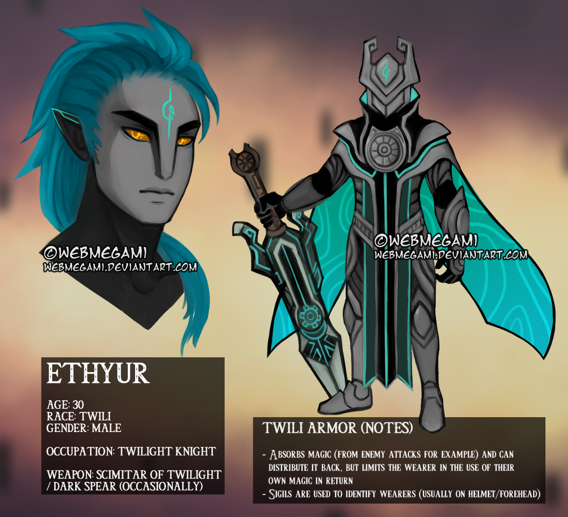 Back in 2019, I've created this character and the full armor design for my twili knights and stories: https://www.deviantart.com/webmegami/art/Ethyur-twili-armor-824021377