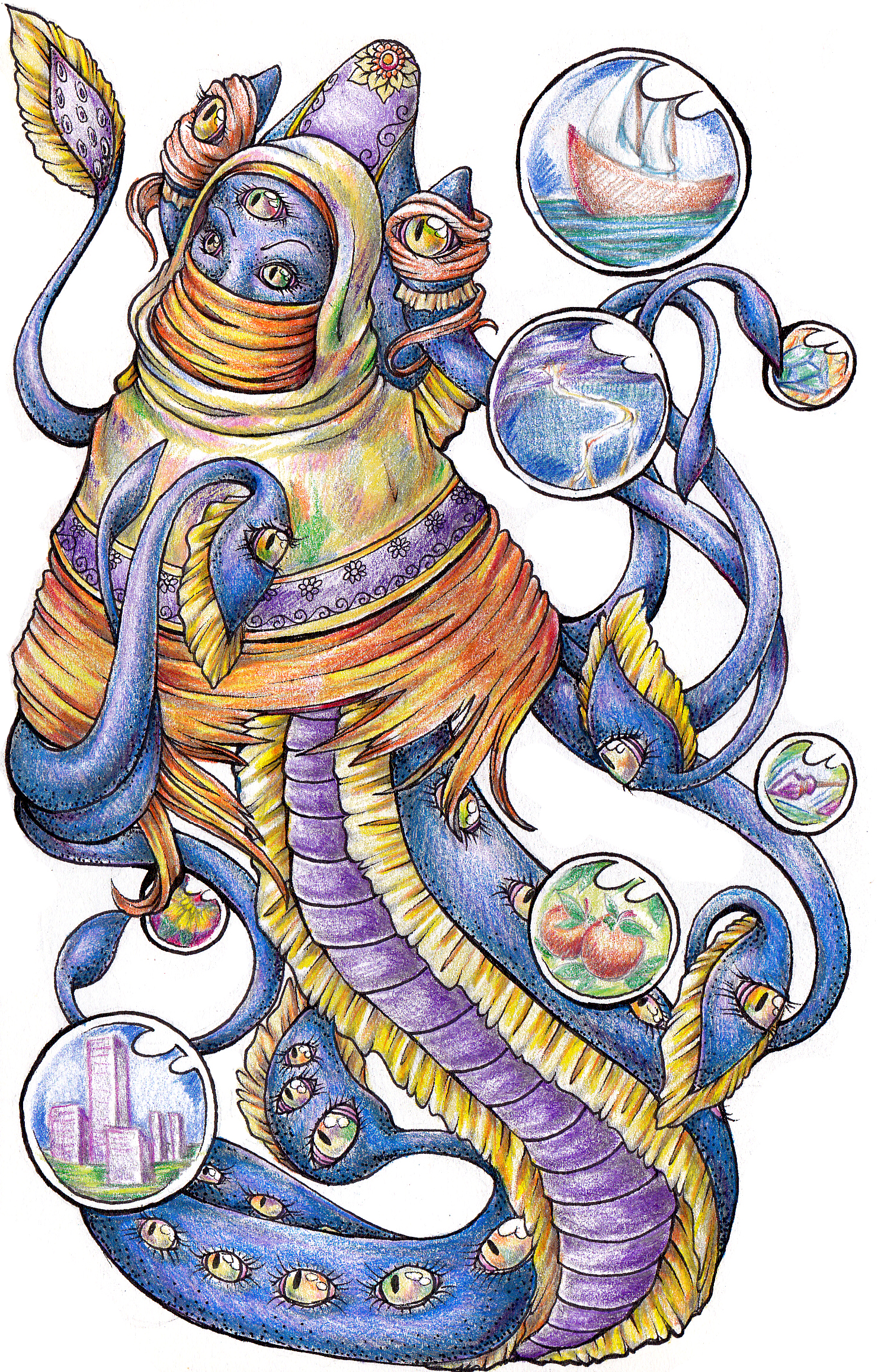 Villain OC design for my story, Ethyrsa. A vessel of a necromist spirit that focuses on illusions. Or, as she would tell you: "I'll give you anything and everything you ever wanted, all it'll cost you is an eye."
