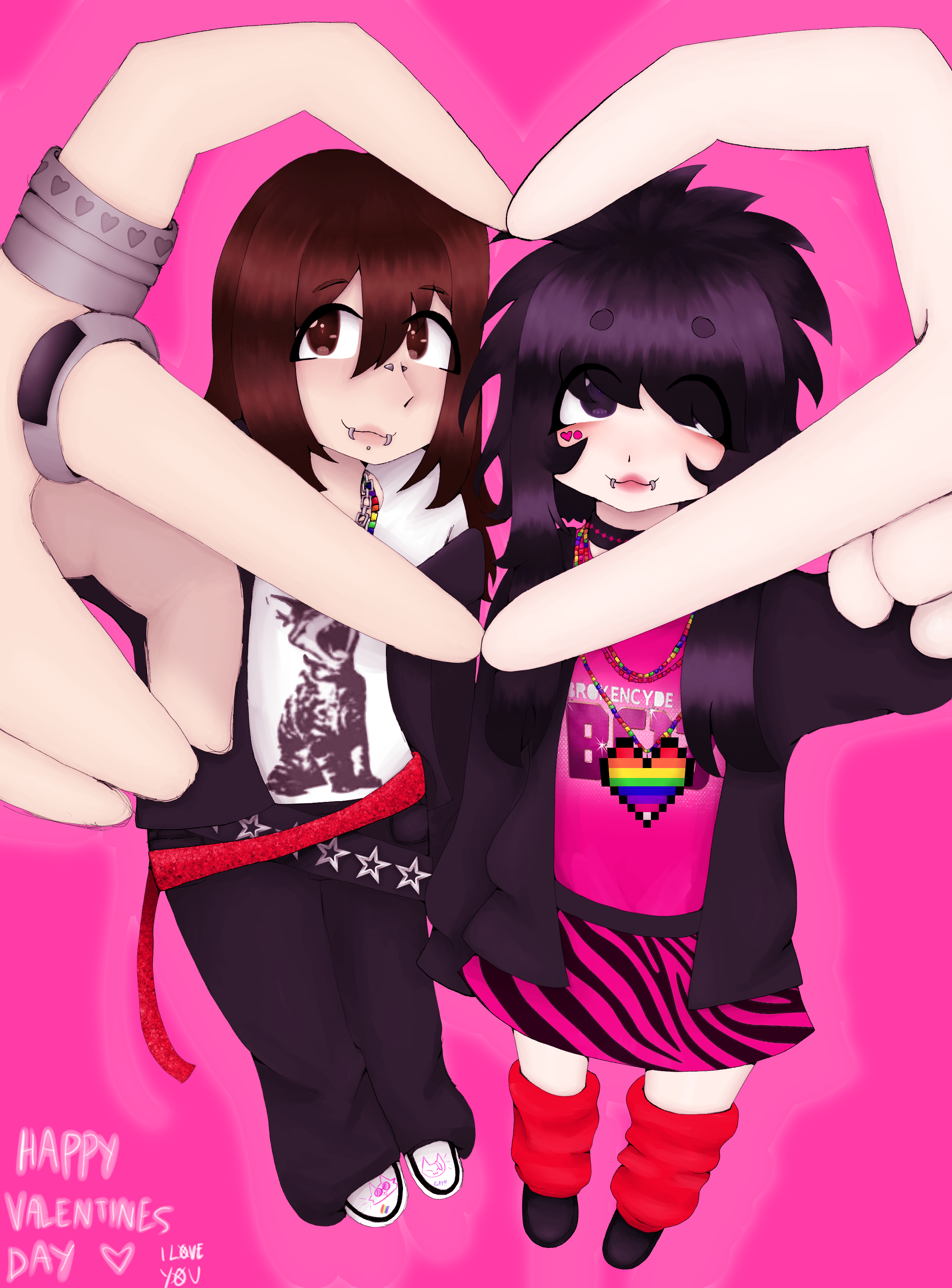 ok ik its not valentines day and that i already posted today buuut im allowed to bc um i ... want to ... so yea !!! i still wanna learn how to draw furries .. anyway this is a drawing of my and my bf !! im the one on the right !! i forgot to give myself hairdye cuz i was rusing the drwaing ;-; its ok thooo