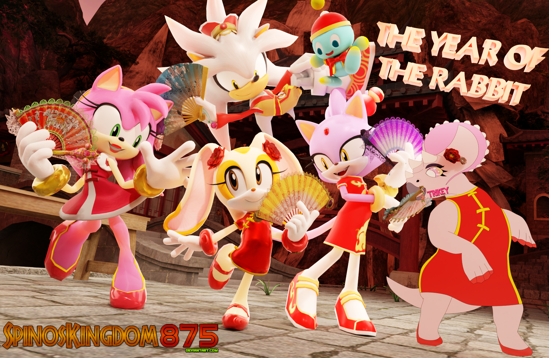 ---------------------------------------Once again, Chinese New Year has returned. This year's animal is the Rabbit. The Rabbit symbolizes beauty, mercy, and good luck. Another coincidence for this year, with one certain little Rabbit celebrating the occasion with her friends in Chun-Nan. They enjoyed the wonderful event with dinner being served later on. NOTE: Don't reupload my Pictures anywhere without consulting me first. Thank you. (Credits: Amy, Blaze, Silver, Cream & Cheese: (c) SEGA & Sonic Team. Trikey: SpinosKingdom875. Logo made by: ShadowNinjaMaster. --------------------------------------- (Stage: Chun-Nan: SpinosKingdom875 --------------------------------------- (Characters: Silver: Sticklove. Amy, and Cream: SpinosKingdom875. Blaze: Hakirya. Cheese: FatalitySonic2. Their account has been deactivated. --------------------------------------- (Prop(s): Flowers: Tiffli. Hand Fans: MoogleOutFitters. Their account is deactivated. ---------------------------------------0 Comments 0 Shares 0 Views
