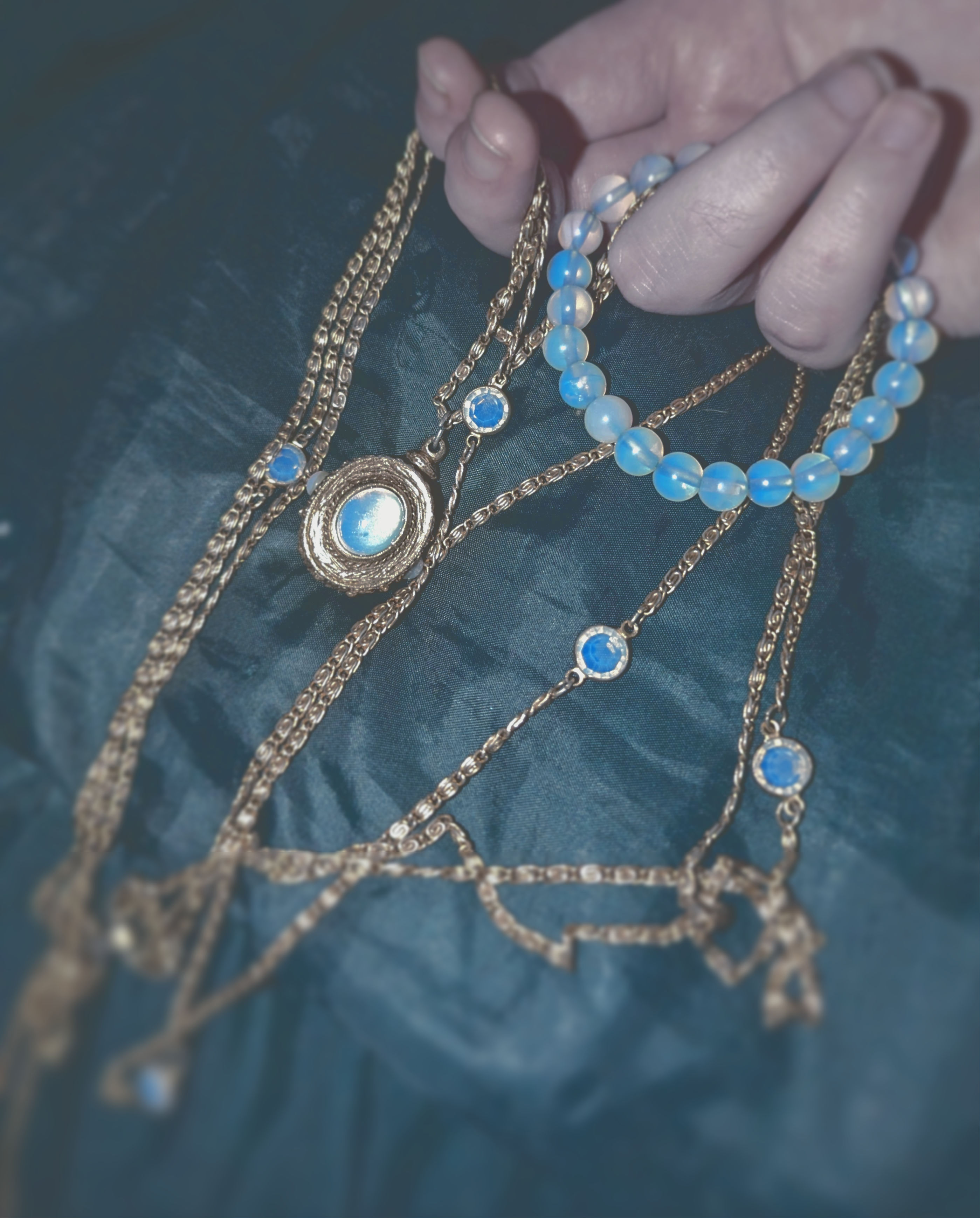 Opalite has associations with the Zodiac sign of Cancer (my Moon sign) and the Third Eye and Crown chakras.