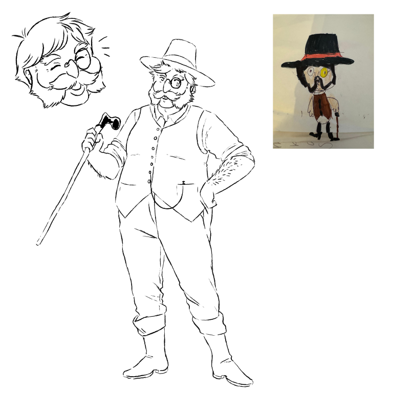 study for class, reimagining a child's drawing into a character