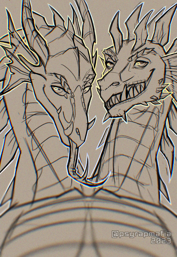designing myself a 2 headed dragon lad about 10 or 12 feet tall, works as the RCF's main muscle. he is quite content being the henchman that carries out his boss's cruel biddings.