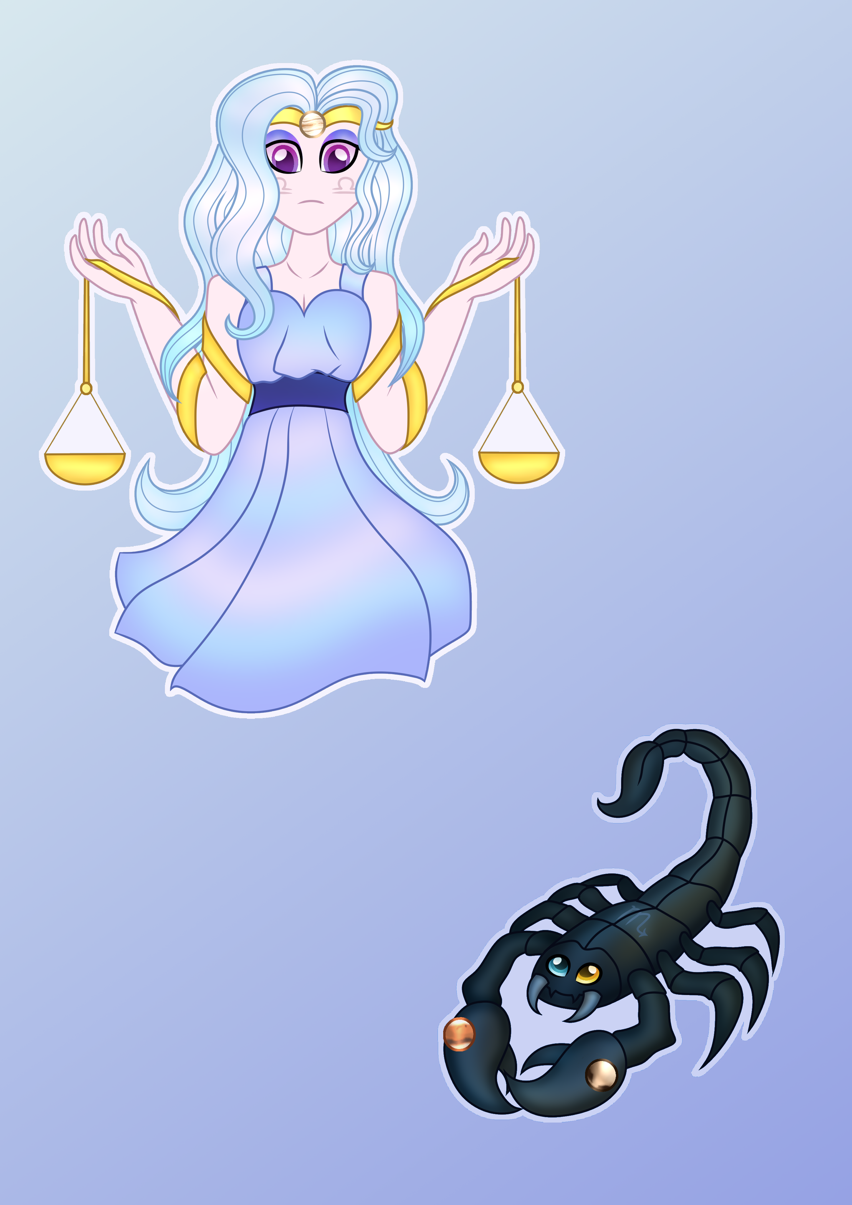 These are my own depictions of the Zodiac Signs that I created to be produced as stickers. They were initially made for my "Process & Production" brief for my 2nd year at university. Just something to keep in mind for all of these designs; Each outcome is a combination of the following factors: Their Element (Fire, Earth, Air and Water), their assigned colour(s), their birthstone(s), and their general depictions. However I did fluctuate in terms of how much of the design they take up; so some designs have more of a colour palette portraying their month's birthstone(s) but nothing for their associated colour(s) or element. Libra: Also known as: The Scales Start & End Dates: 23rd September to 22nd October Element: Air (Masculine) Ruling Planet(s): Venus Primary Birthstone(s): Opal Assigned Colour(s): Pink & Blue Chosen Symbol Placement: Both cheeks on the face Scorpio: Also known as: The Scorpion Start & End Dates: 23rd October to 21st November Element: Water (Feminine) Ruling Planet(s): Mars & Pluto Primary Birthstone(s): Topaz Assigned Colour(s): Black Chosen Symbol Placement: Back Designs were created by Me Created between 21st November 2023 and 12th December 2023 (From sketchbook to digital)