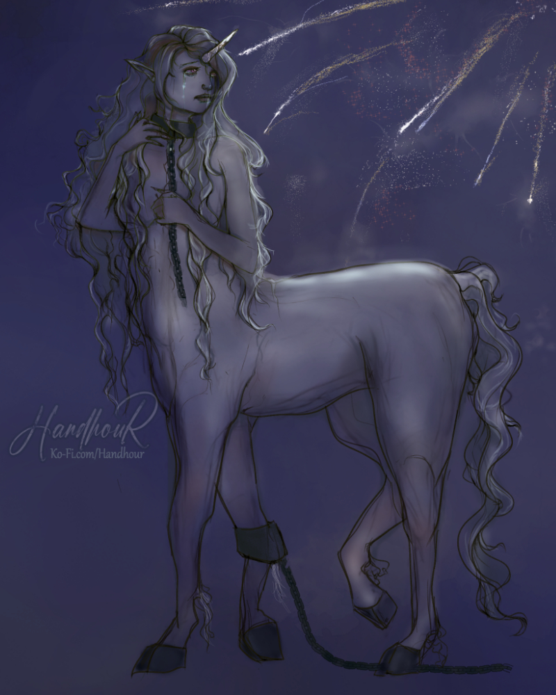 [Handhour Galleries on Ko-Fi](https://ko-fi.com/handhour) || [Commission Site and Socials](https://handhour.carrd.co/)July's theme went to the centaur, with a traumatized unicorn theme. Mortals intwined with the history of the unicorn have ever been violent, greedy creatures. Probably vaguely inspired by my subconscious love for The Last Unicorn. Every month, Ko-fi members can suggest monster/creature/legends for me to fully illustrate, but this one was more of my own idea. :) [Handhour Galleries on Ko-Fi](https://ko-fi.com/handhour) || [Commission Site and Socials](https://handhour.carrd.co/)0 Comments 0 Shares 0 Views -