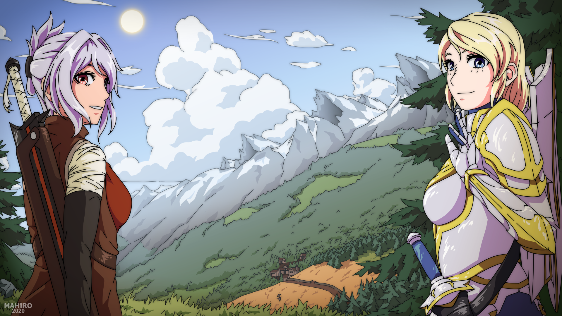 _An old drawing from 2020, but since I'm moving from DeviantArt to here (because of the AI-bullshit they are doing there now) I reupload it here again^^_ ------ And again **Raven** and **Seraphine**, the main characters of my own story. I drawed this as a background for my own website, but I will redraw it in the next weeks because my artstyle changed quite much in the last 2 years^^