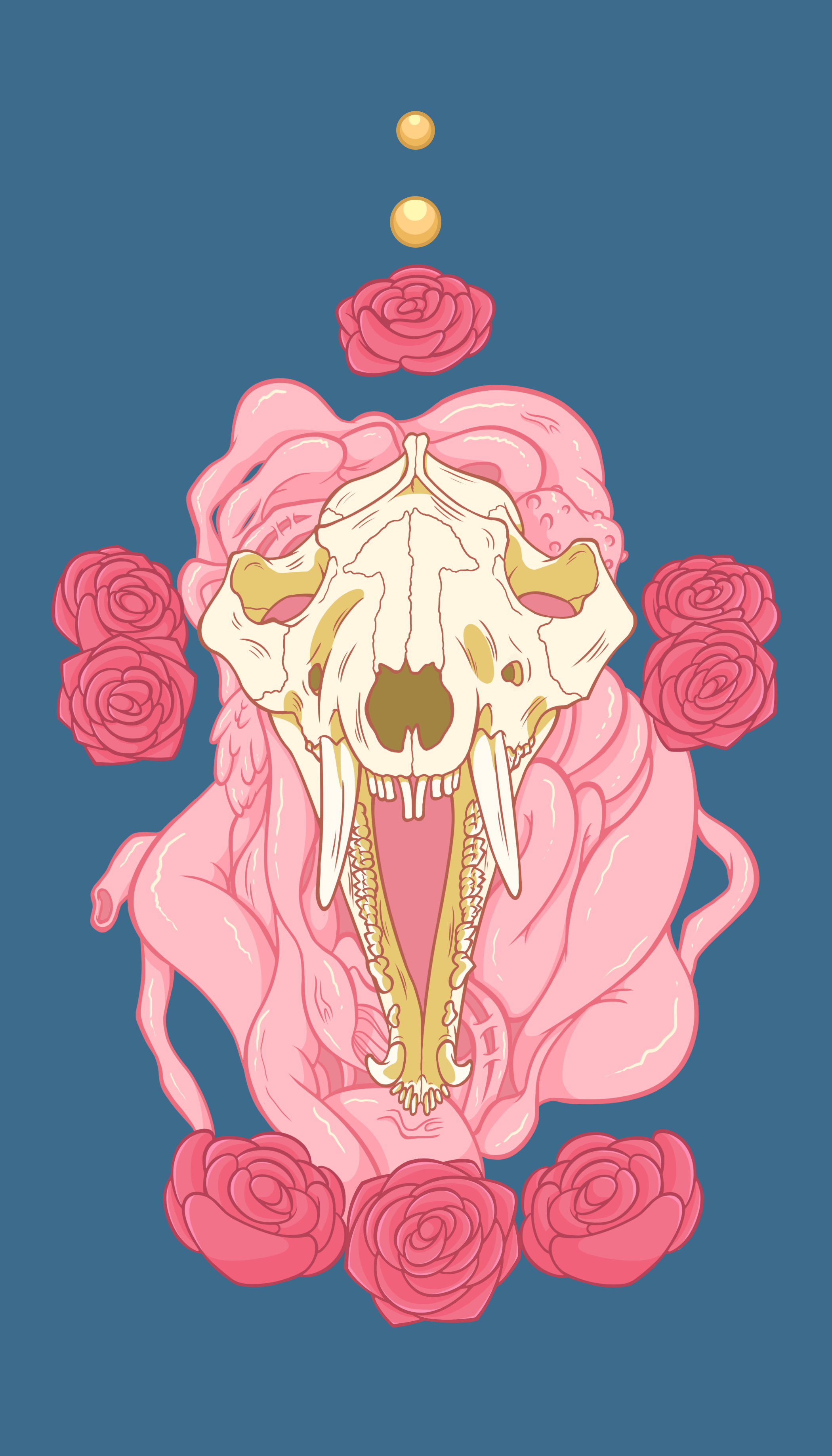 A little piece that I did for the back of my business cards. I wanted to include something that both showcased my skills as an artist, and highlighted some of my favorite things to draw. I also worked with a limited color palette that was really fun to play around with. The possum skull was referenced from a real possum skull I found under an abandoned barn when I was around 14 years old.