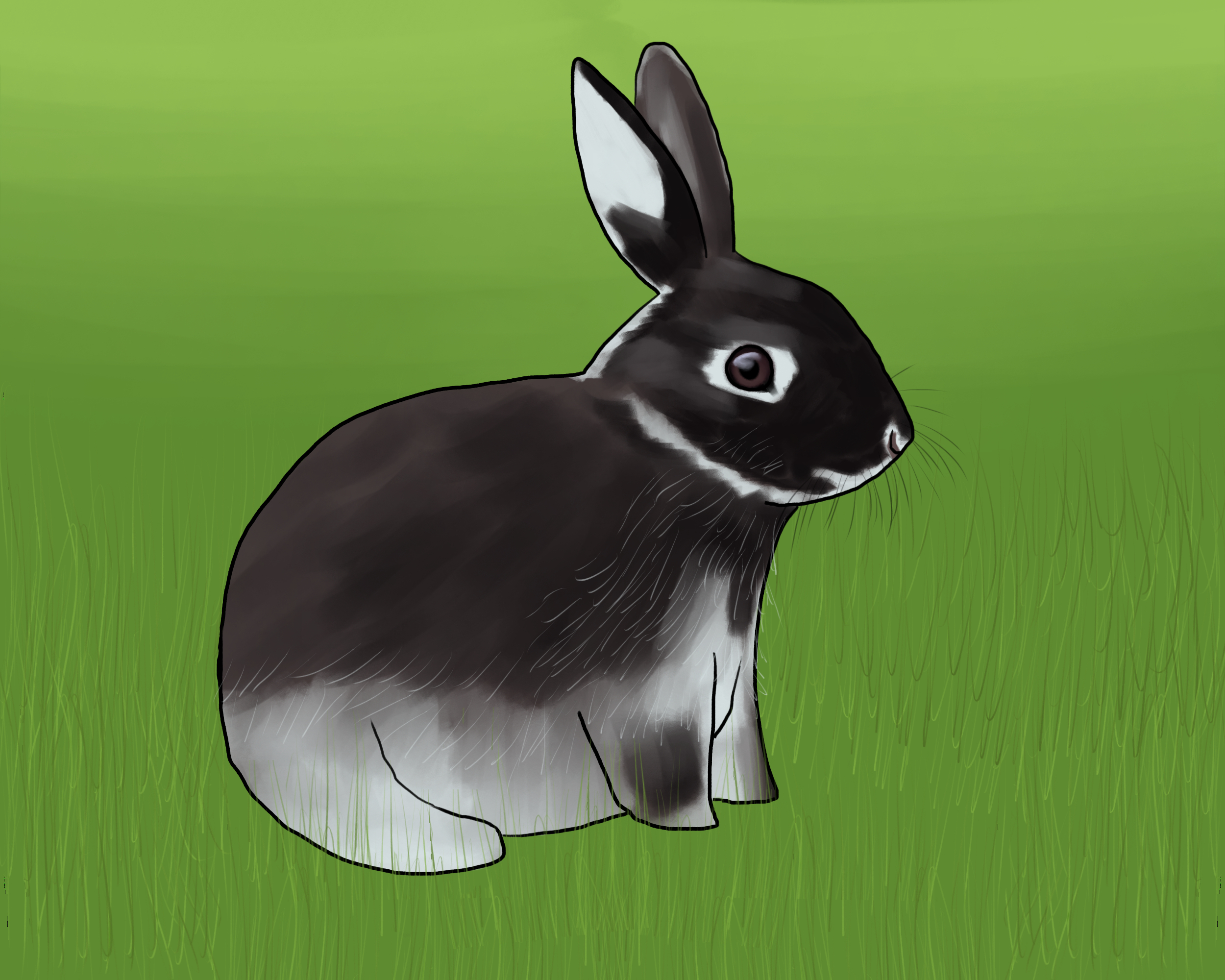 [ID: A digital painting of a very round black and white rabbit. The rabbit is facing to the viewer's right. /ID]