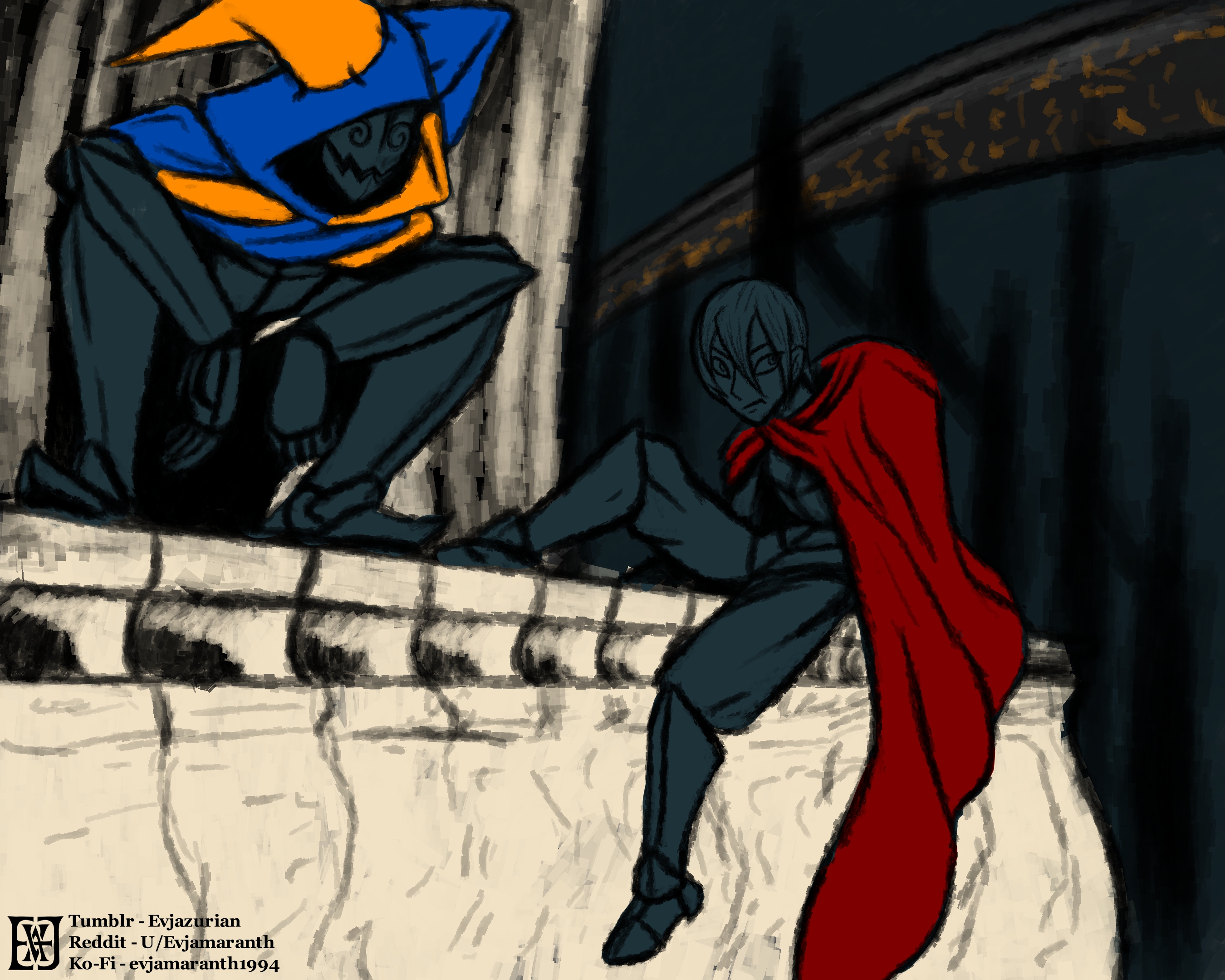 I had this idea of them chilling out upon the balcony railing of a spire, but several factors kinda dampens the piece.