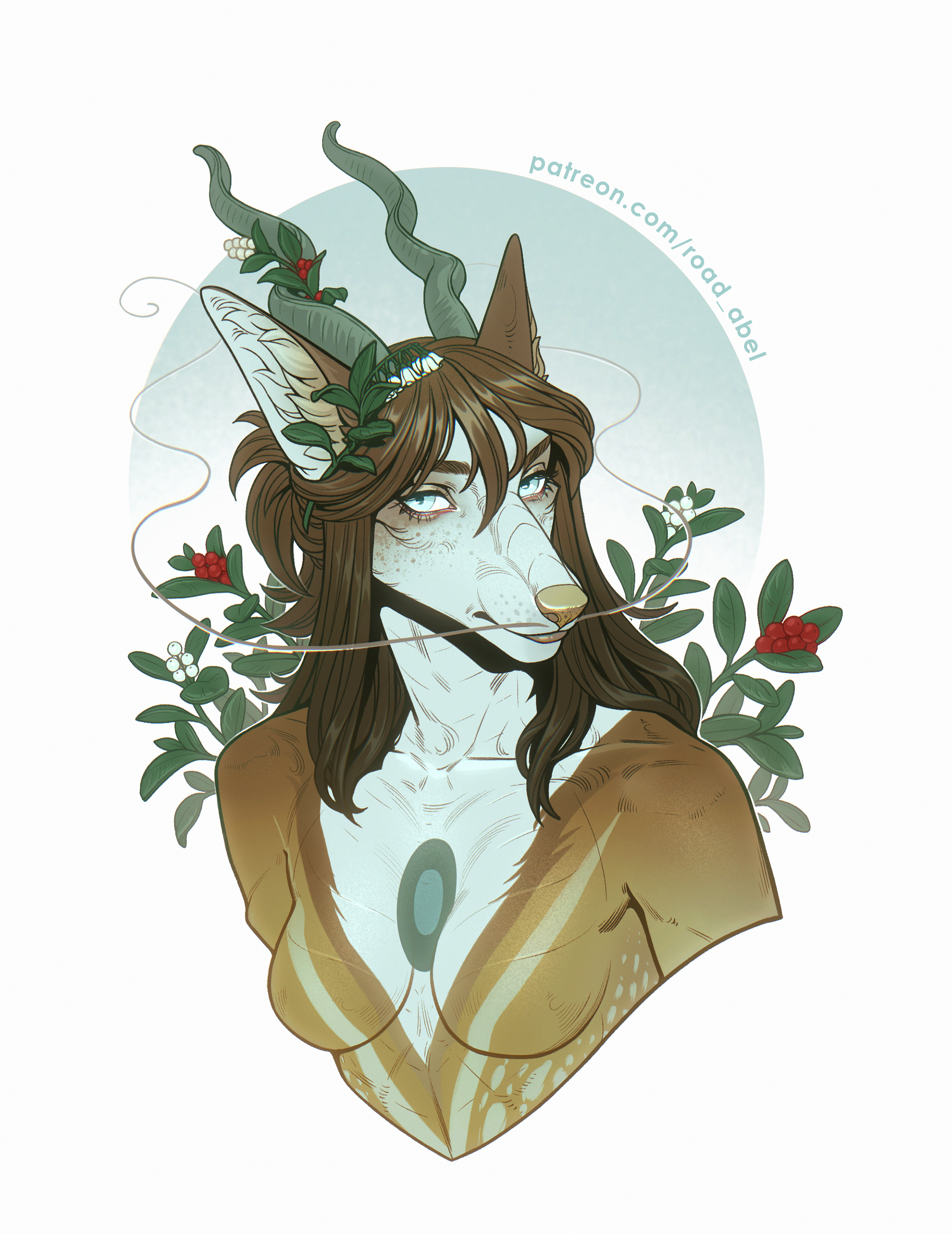 One of my favorite portraits! I usually combine such portraits with flowers, but this time I chose berries. A combination of red berries and delicate white flowers. I'm really in love with this girl's design! She was a pleasure to draw.