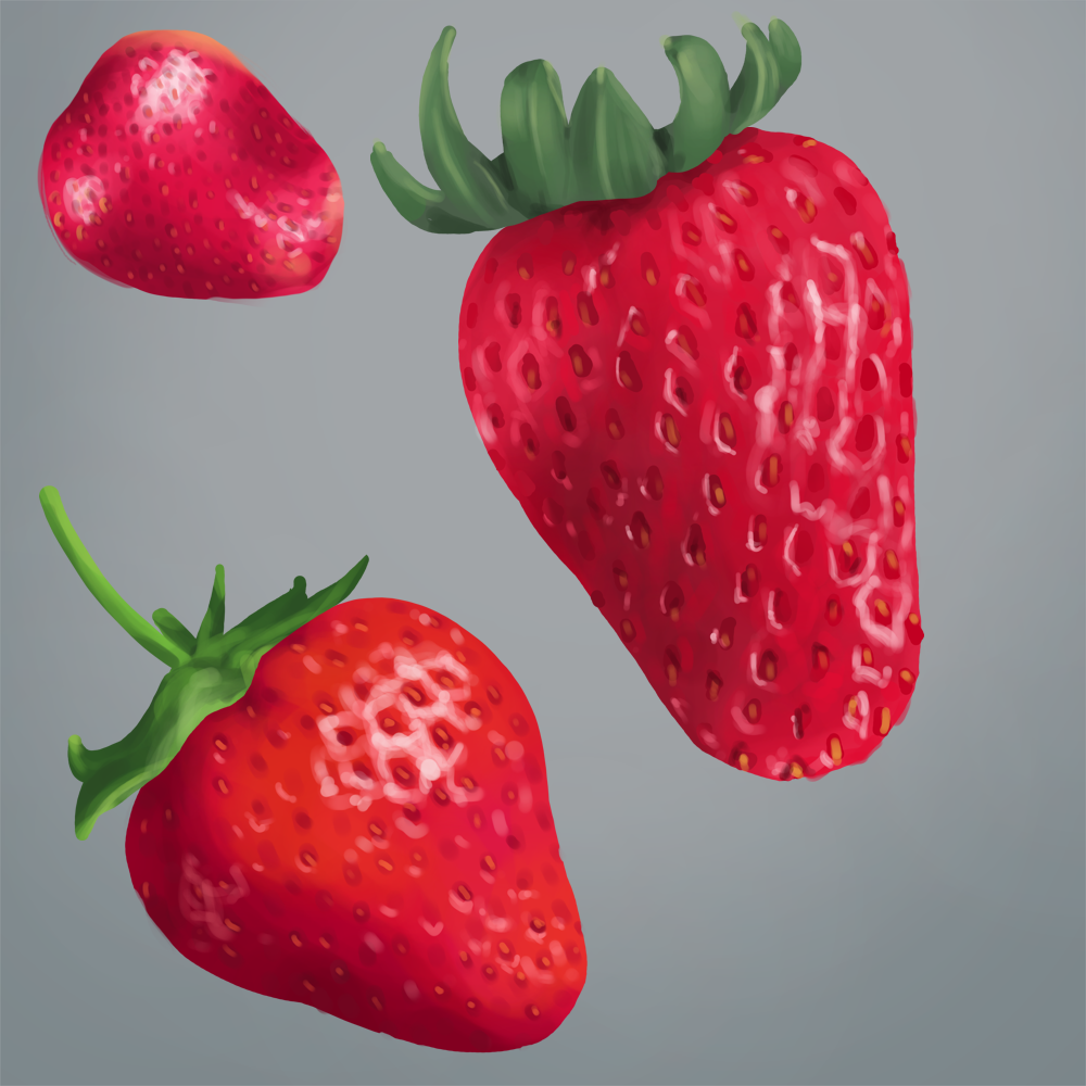 • man i havent drawn in a minute. some strawberries that came out better than i thought. im trying to make some more stylized, but its not quite coming together the way i want.