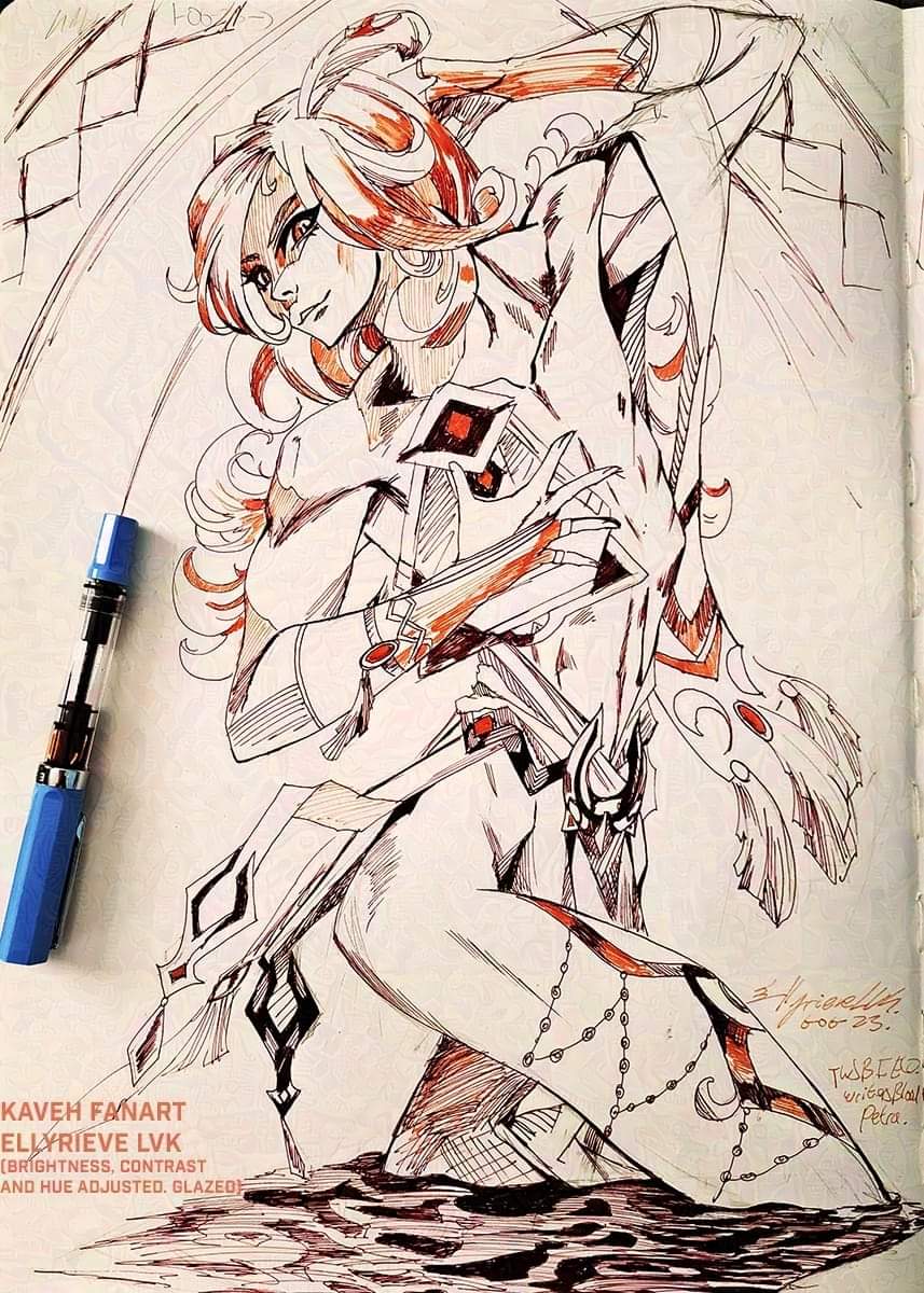 The original sketch behind the piece from yesterday 😄. Done WITH a Twsbi eco fountain pen and Diamine Writers Blood and Petra inks. On A3 Moleskein sketchbook paper.
