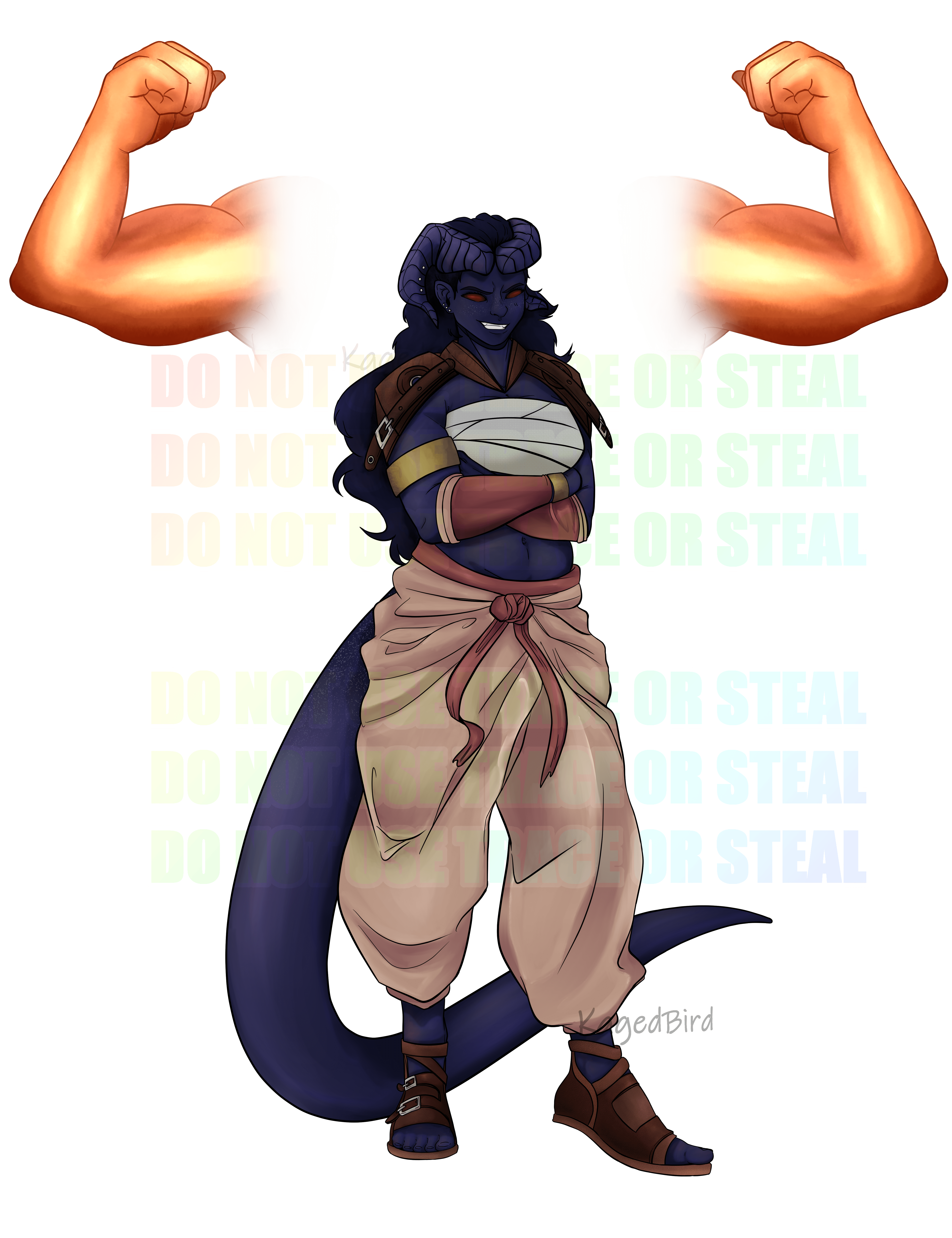 • A commission from a friend for her Tiefling Monk's girlfriend who is also a Tiefling Monk. Belrak is a very buff hot woman who can absolutely beat me up any time, please, give me a chance I can be good for you I promise-
