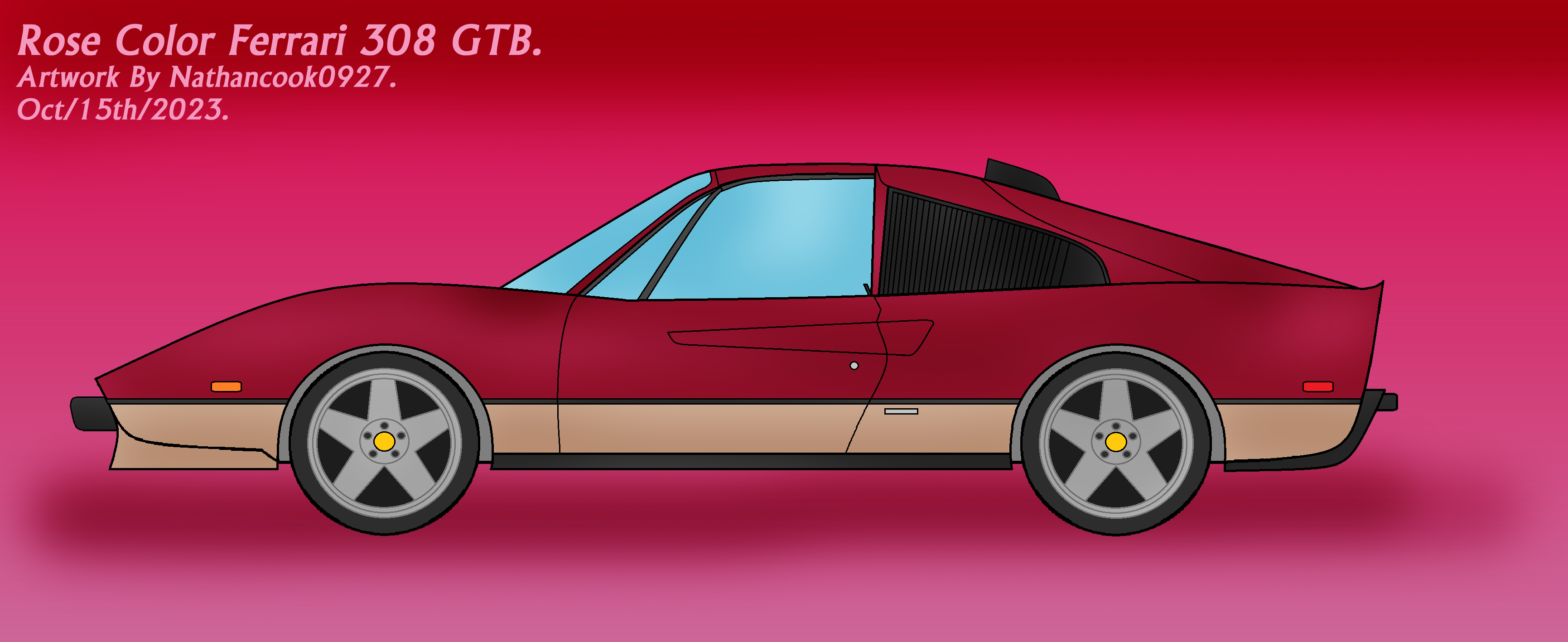 I'd been working on this Color for 1 of my Ferrari Bases after seeing a Ferrari 308 GTB on Facebook in this nice-looking color similar to the one that I'm posting here, I'd added in a Pink Back Guard since the Rose Color is Kind of Close to Pink since it's a mixture of Pink & Dark Red, So I've decided to post it for Pink October since I'd sometimes posted Pink Car Artworks for my Car Arts once in awhile.