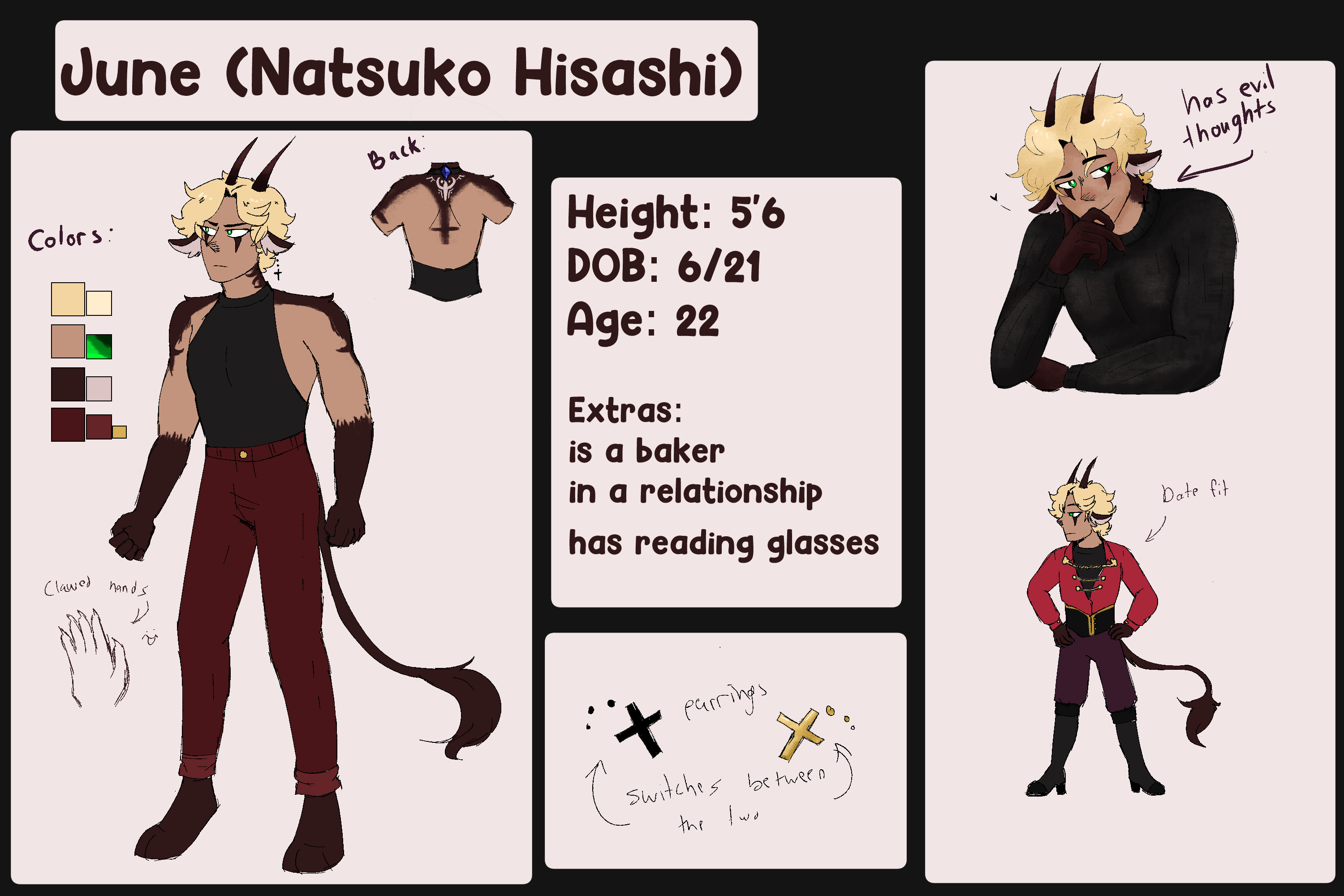 Learn more about him here: https://toyhou.se/16151289.june-natsuko-hisashi-An original character of mine and what you will mainly be seeing on my account :) Learn more about him here: https://toyhou.se/16151289.june-natsuko-hisashi-0 Comments 0 Shares 0 Views