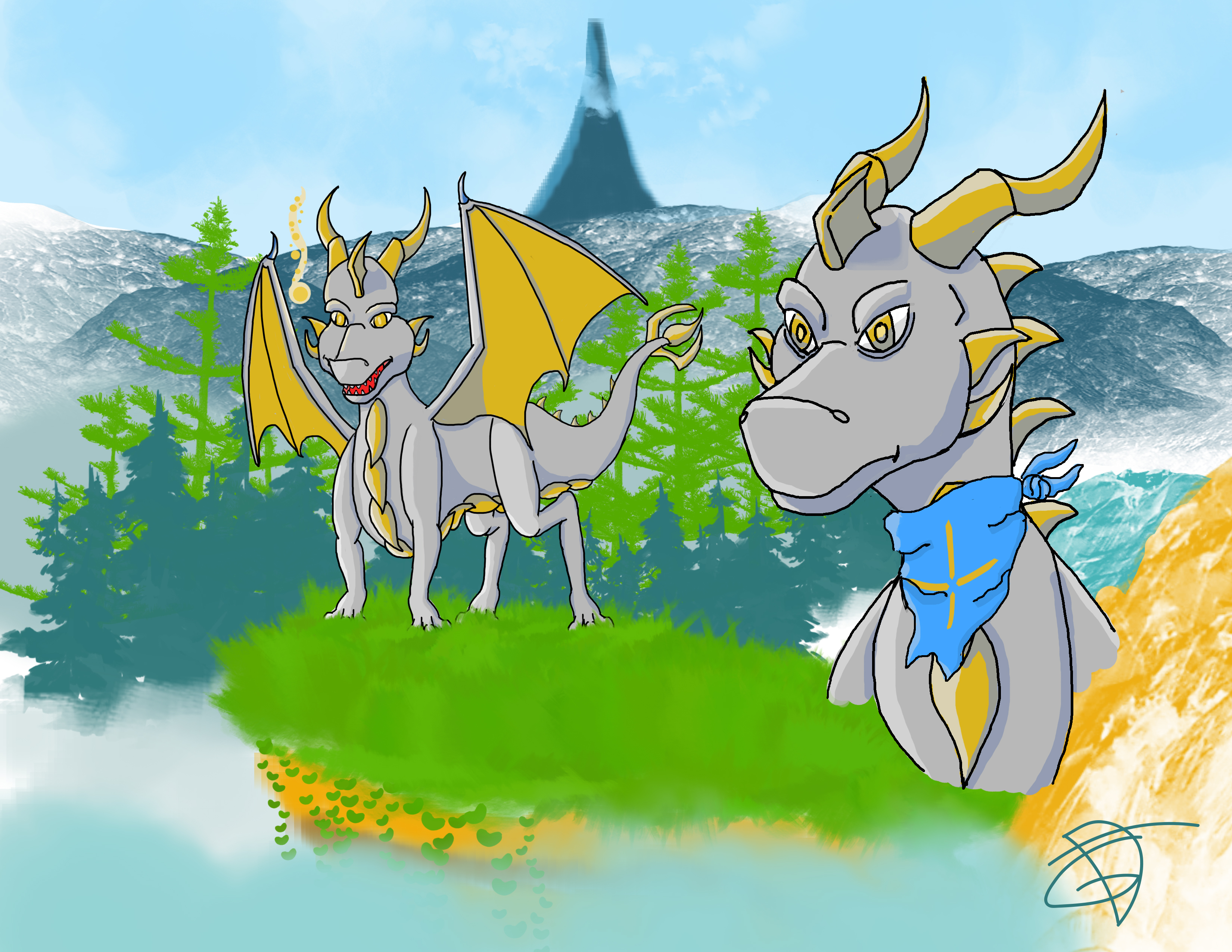 Here we have another old pic from within my art archives, here's Dasius, or Das for short, on kind of a mockup game scene I imagined him on, this over here was mostly experimentation on material texture, while also using some old arts within it...