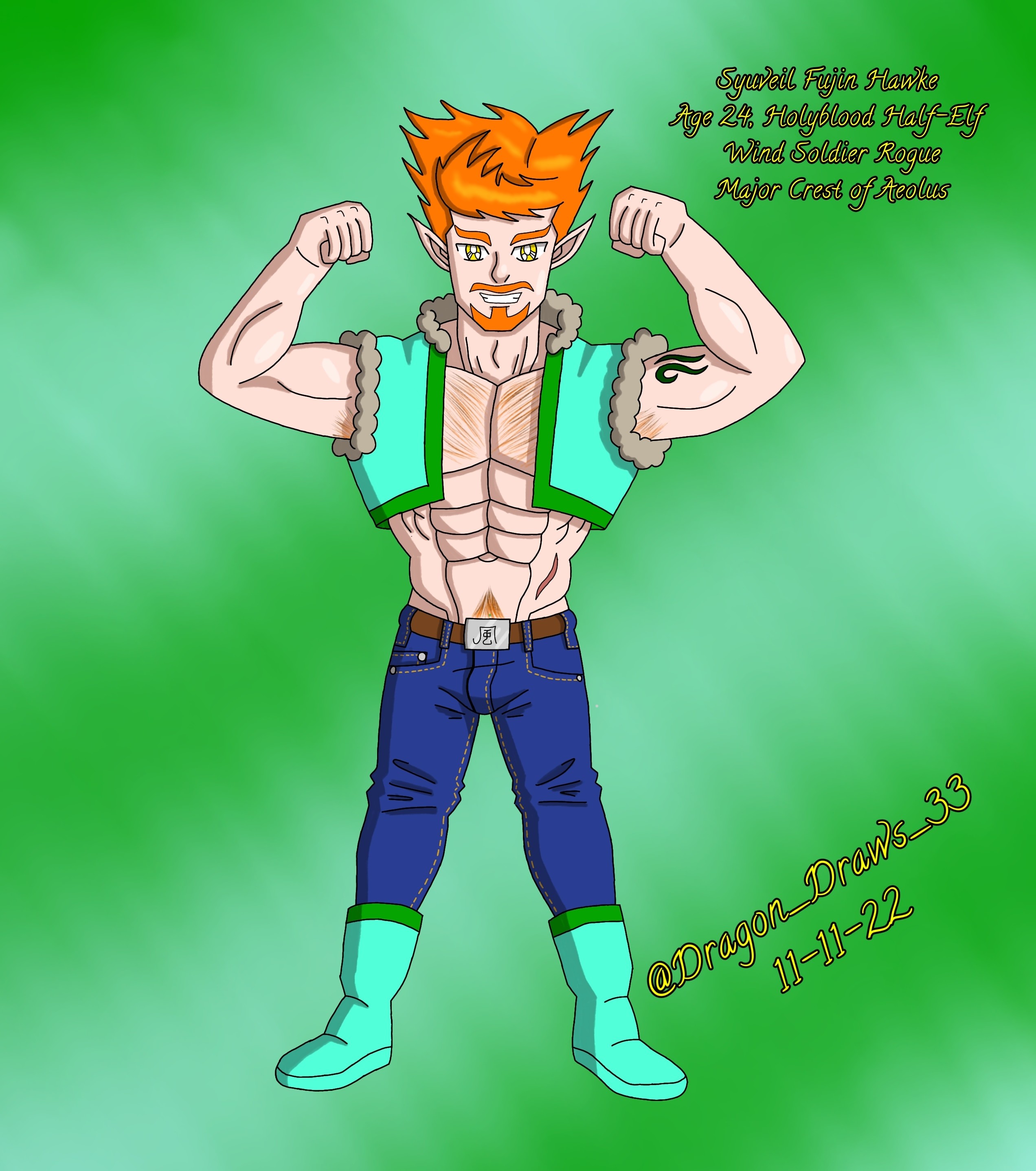 A holyblood (aasimar in DnD terms) half-elf rogue showing off his muscle. He bears the Major Crest of Aeolus, and becomes the Wind Soldier as a result.A holyblood (aasimar in DnD terms) half-elf rogue showing off his muscle. He bears the Major Crest of Aeolus, and becomes the Wind Soldier as a result.0 Comments 0 Shares 5 ViewsPlease log in to like, share and comment!