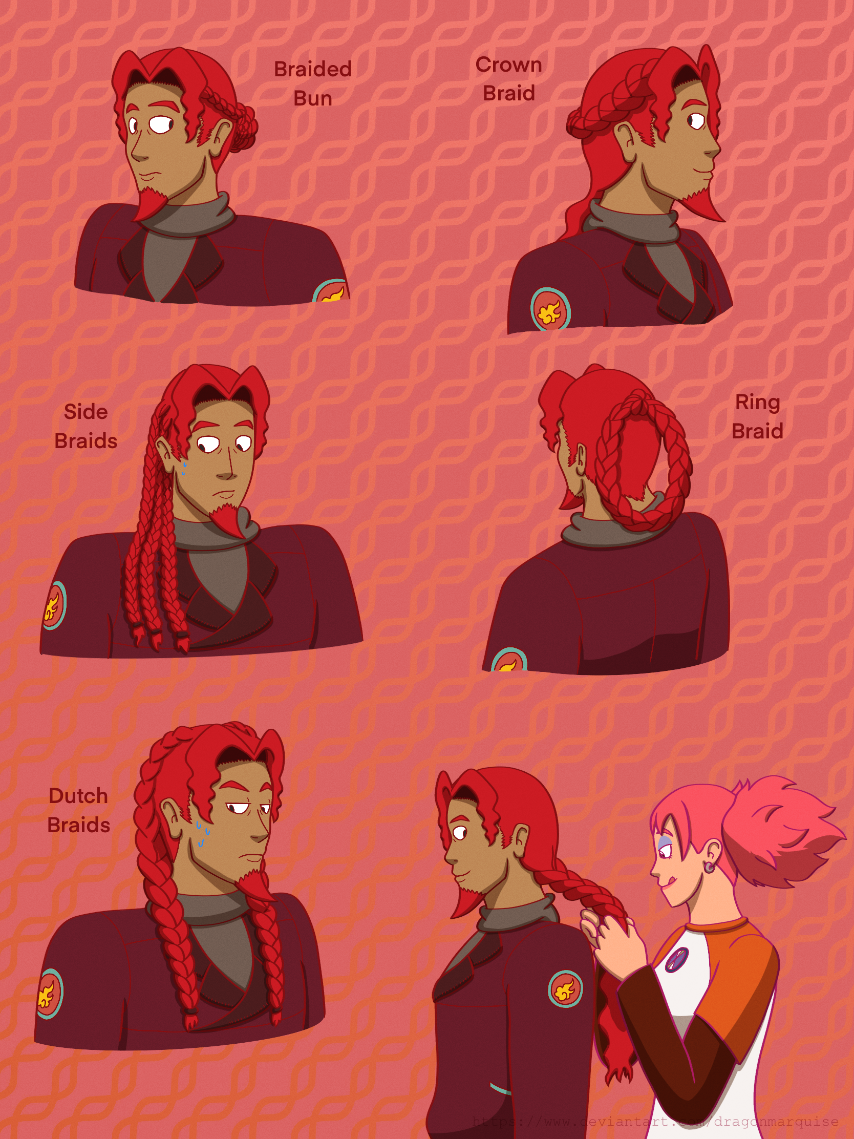 Ultimately, I feel like he'd only really go with a single regular braid rather than anything fancy, like the French or Dutch style ones that start on the head. Honestly, when I had my hair longer, those kinds of styles would always leave my hair and scalp hurting, and I can't imagine a guy like Match would like that much either. e_e;"For this re-upload, I'm just gonna copy-paste what I put on the original DeviantArt submission, since it's easier that way lol "Bit of a silly one here, I just wanted to see how Match would look with various braid styles. He certainly has enough hair for a lot of fancy styles. xD Ultimately, I feel like he'd only really go with a single regular braid rather than anything fancy, like the French or Dutch style ones that start on the head. Honestly, when I had my hair longer, those kinds of styles would always leave my hair and scalp hurting, and I can't imagine a guy like Match would like that much either. e_e;"0 Comments 0 Shares 26 Views -