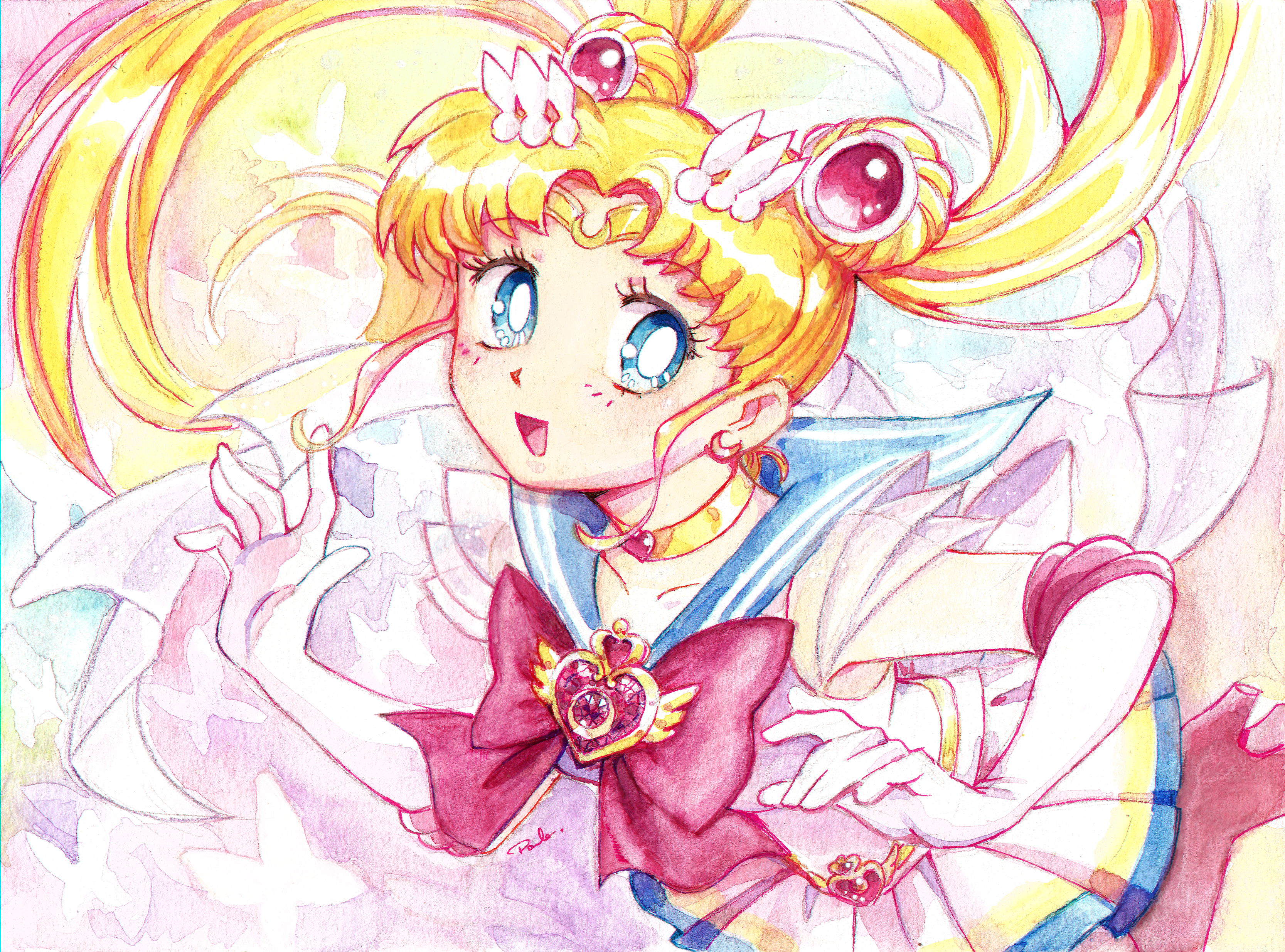 Super Sailor Moon, I drew on watercolors, some gel pens (?) wood pencils, watercolor pencils and watercolor paint!