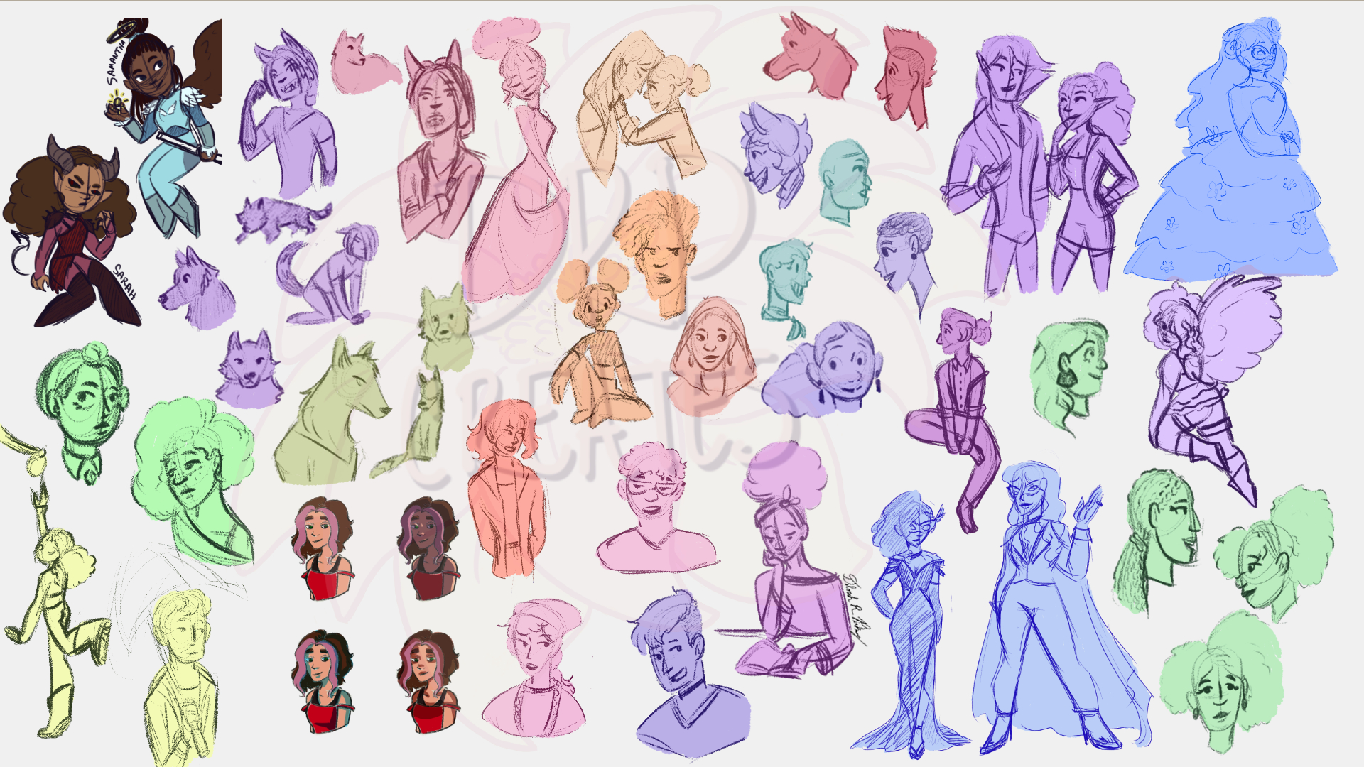 If you thought I was done, should've thought again! I had to also do the month prompt! Thought I'd so something different and focus on clovers. This was a pretty ambitious drawing, I don’t think I’ve had an illustrated this populated before. So to finish things off, I have all of my OCs from the other drawings this month!