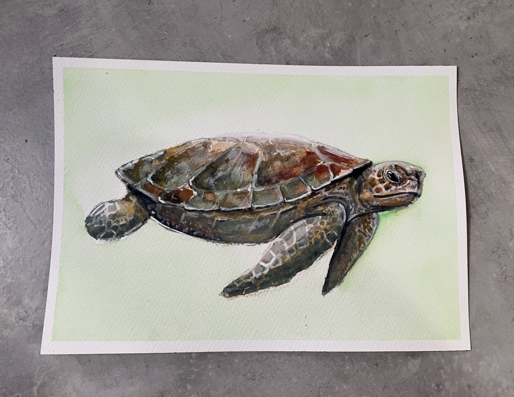 Watercolor & gouache painting of a sea turtle0 Comments 0 Shares 7 ViewsPlease log in to like, share and comment!