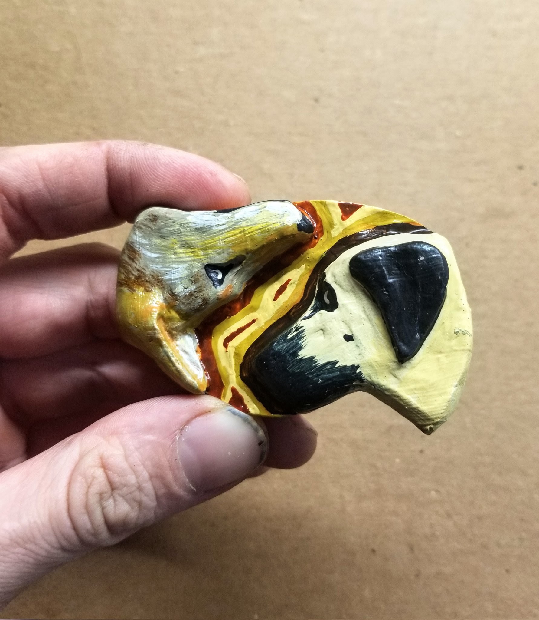 Made with polymer clay, acrylics and silver leaf.A relief carving I made (with permission, of course) based on [The Feast]https://www.furaffinity.net/view/39181186/(The Feast), by my pal Maquenda. Be sure to check out her work! Made with polymer clay, acrylics and silver leaf.0 Comments 0 Shares 6 Views 0 -