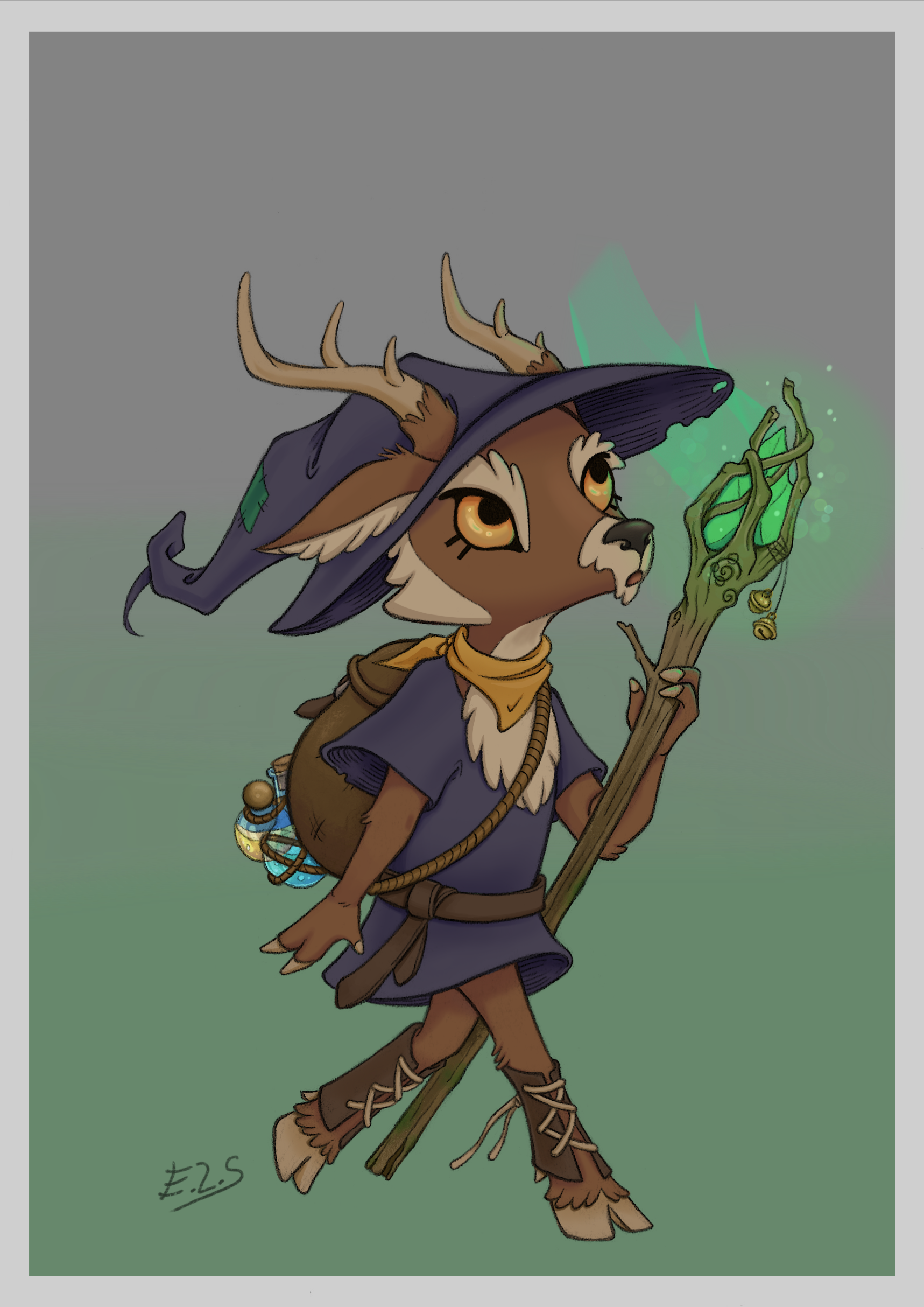 I doodled this lil’ wizard deer as a stream of conciousness, and then he became line-art, and fhen there was colour
