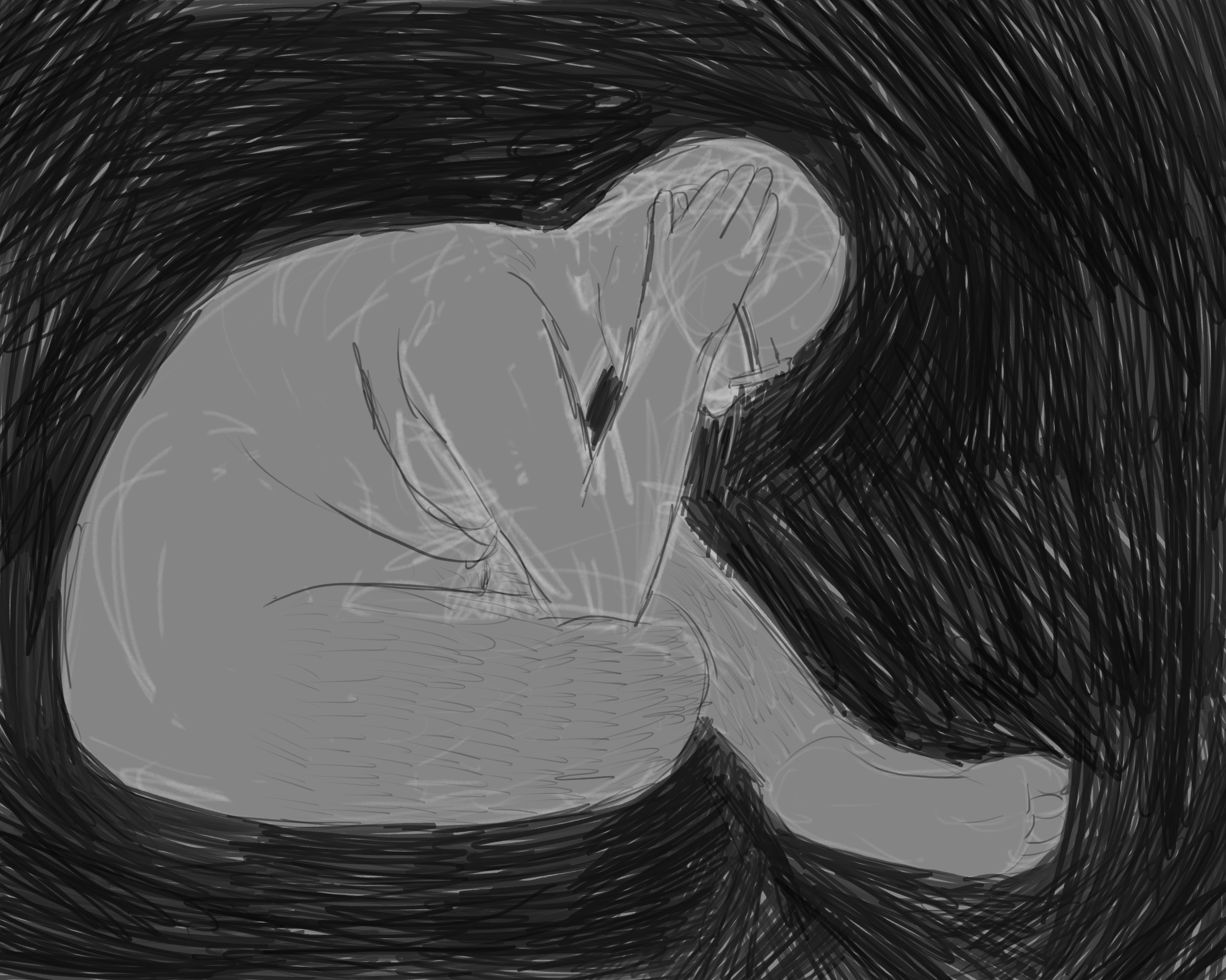 [ID: A monochrome drawing of a naked person wearing glasses hunched over and holding their head. Around him are scribbles filling in the empty space with textured black and grey lines.Personal piece. I am having Some Emotions lately. [ID: A monochrome drawing of a naked person wearing glasses hunched over and holding their head. Around him are scribbles filling in the empty space with textured black and grey lines.0 Comments 0 Shares 54 Views -