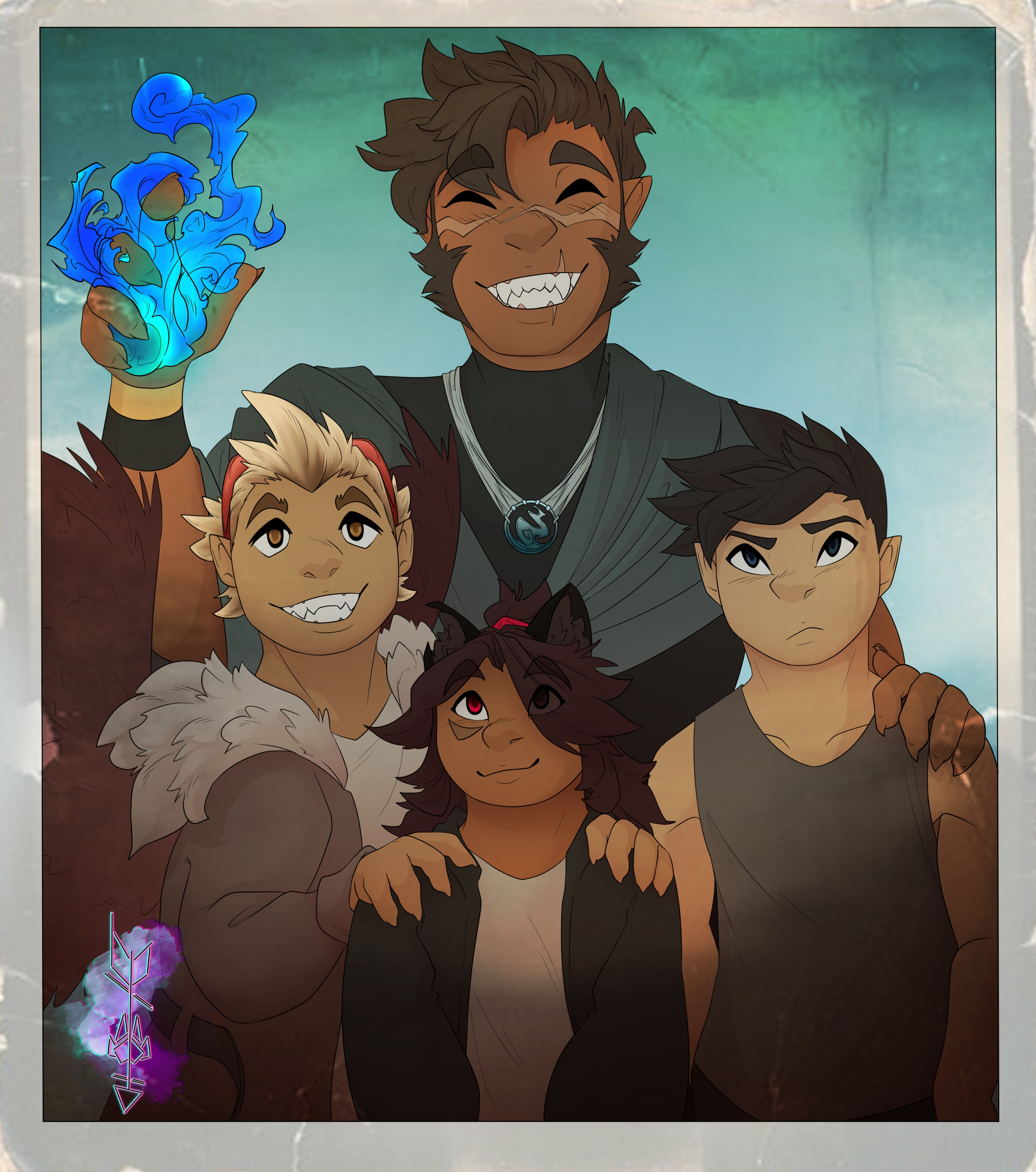 Really loved making this piece as it helped pull me out of a long art block earlier this year! It's got some lore behind it but...just think of it as a photo taken before a long, dark time for these four.**_A photo of the Etherial Sargauhn, Aonerin Howllund, and his three apprentices: Hawke Eswryll, Jewel Occurarae, and Tyshion Howllund._** Really loved making this piece as it helped pull me out of a long art block earlier this year! It's got some lore behind it but...just think of it as a photo taken before a long, dark time for these four.0 Comments 0 Shares 2 Views -