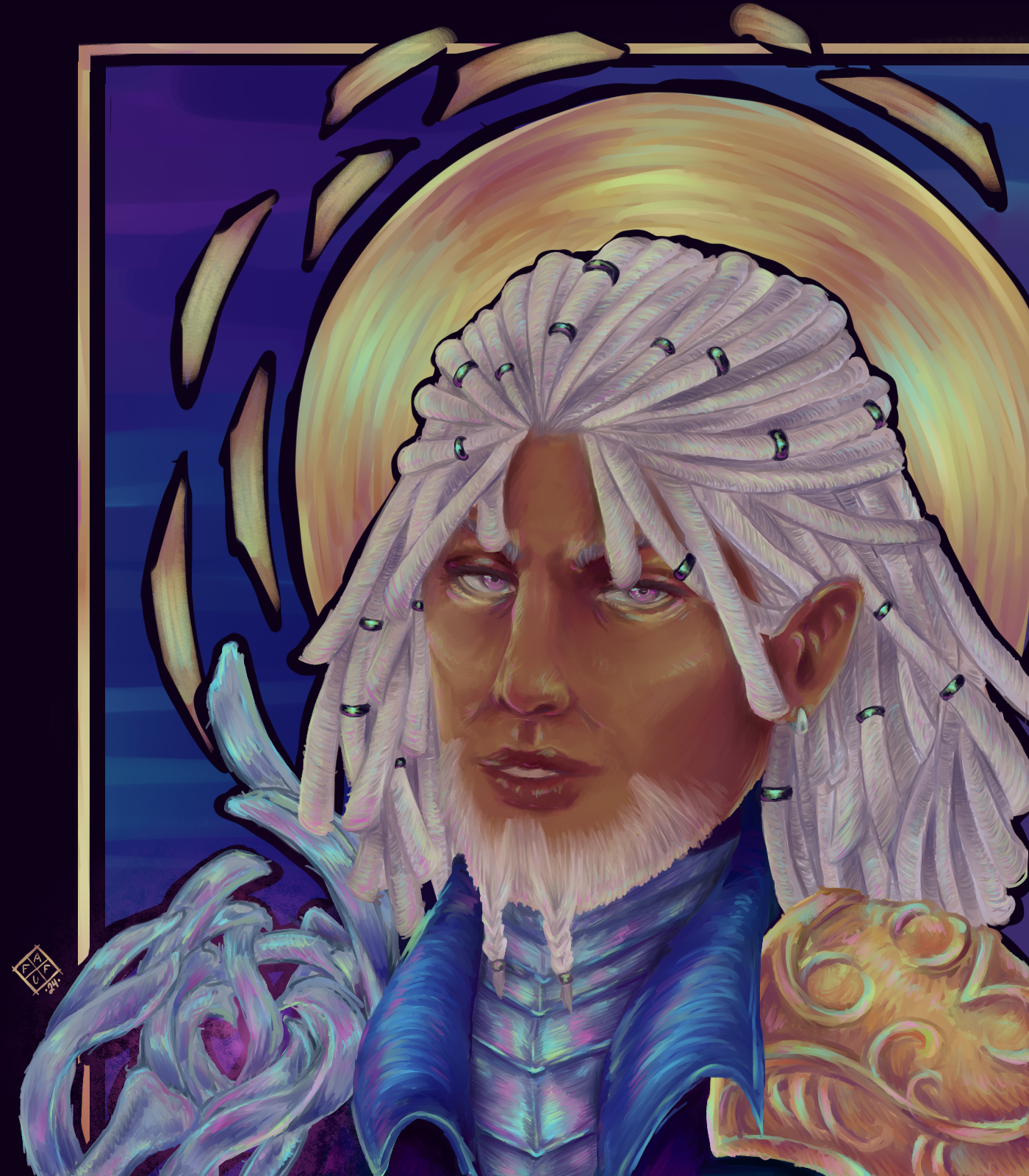 Source: Original Character from personal setting.A redraw of an old piece. Was done in May of 2020. Reposting from my Twitter. Media: Marker Paper, Gold Leaf, Copic Marker, Micron Fineliner, Fabercastel Watercolor Pencil, White Gel Pen, Character: Cleite Per'yah Source: Original Character from personal setting.0 Comments 0 Shares 5 Views -